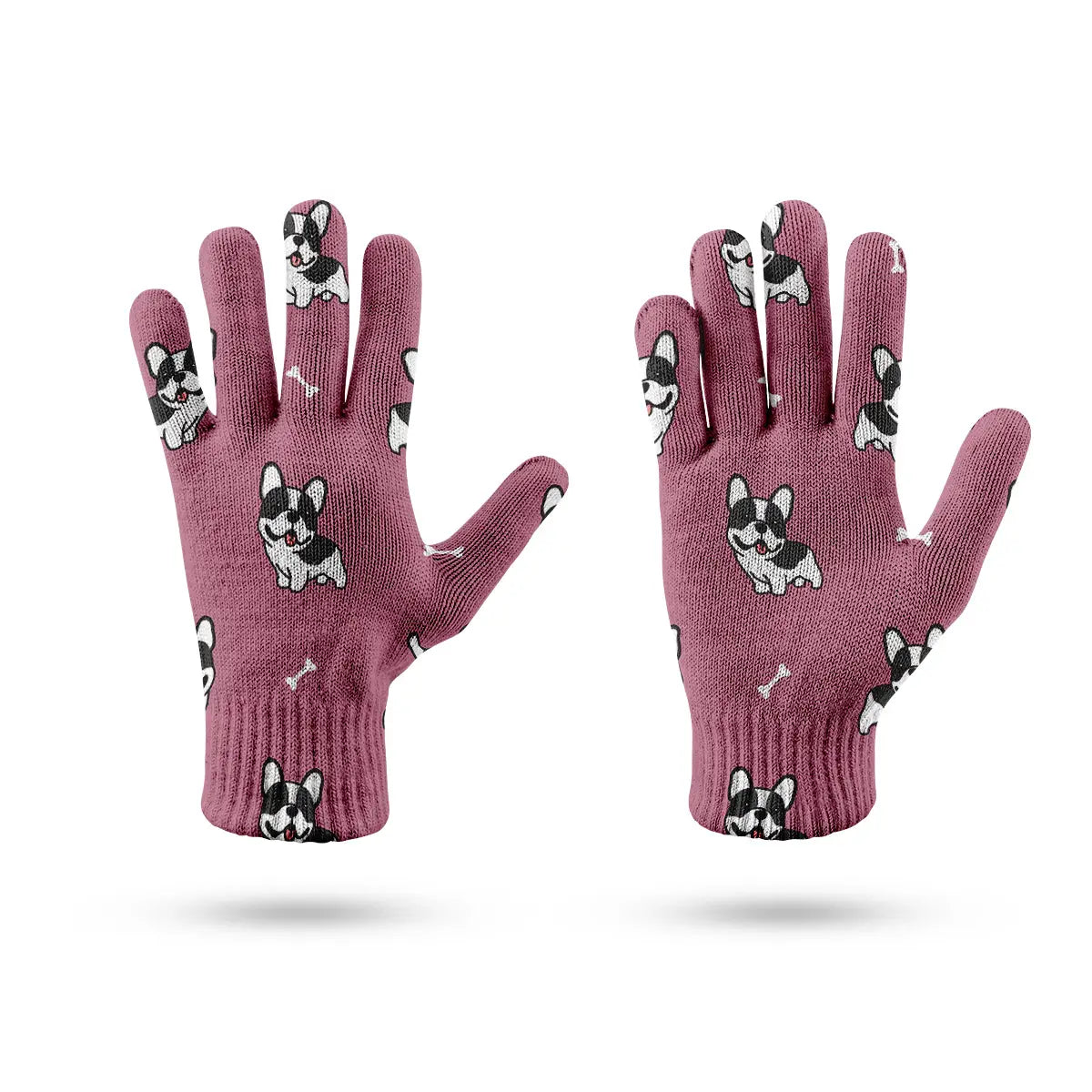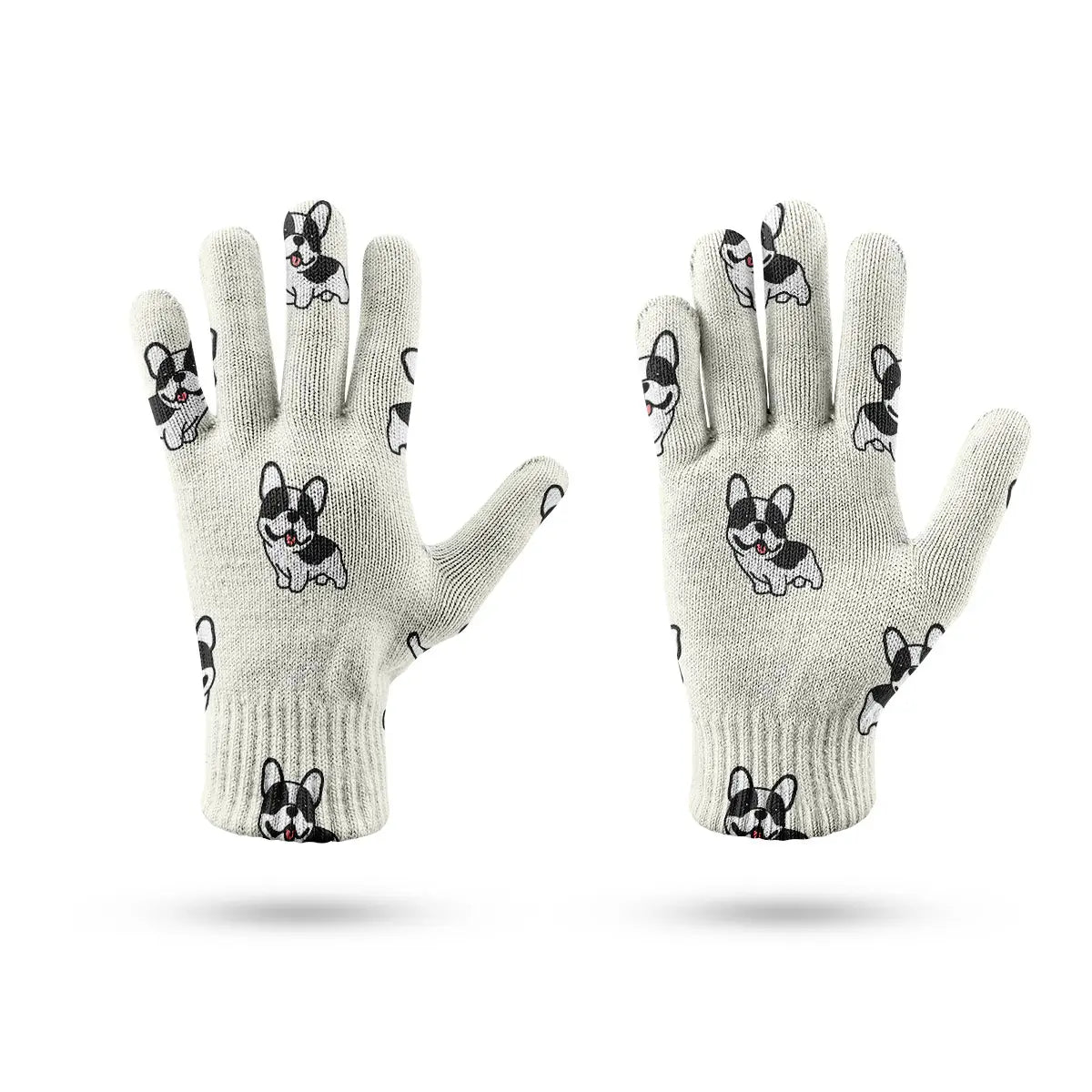 Featuring adorable pied French Bulldogs in charming poses, these gloves are perfect for any dog lover.