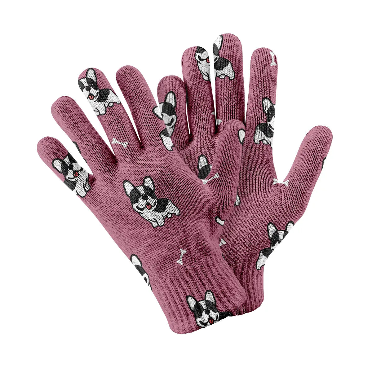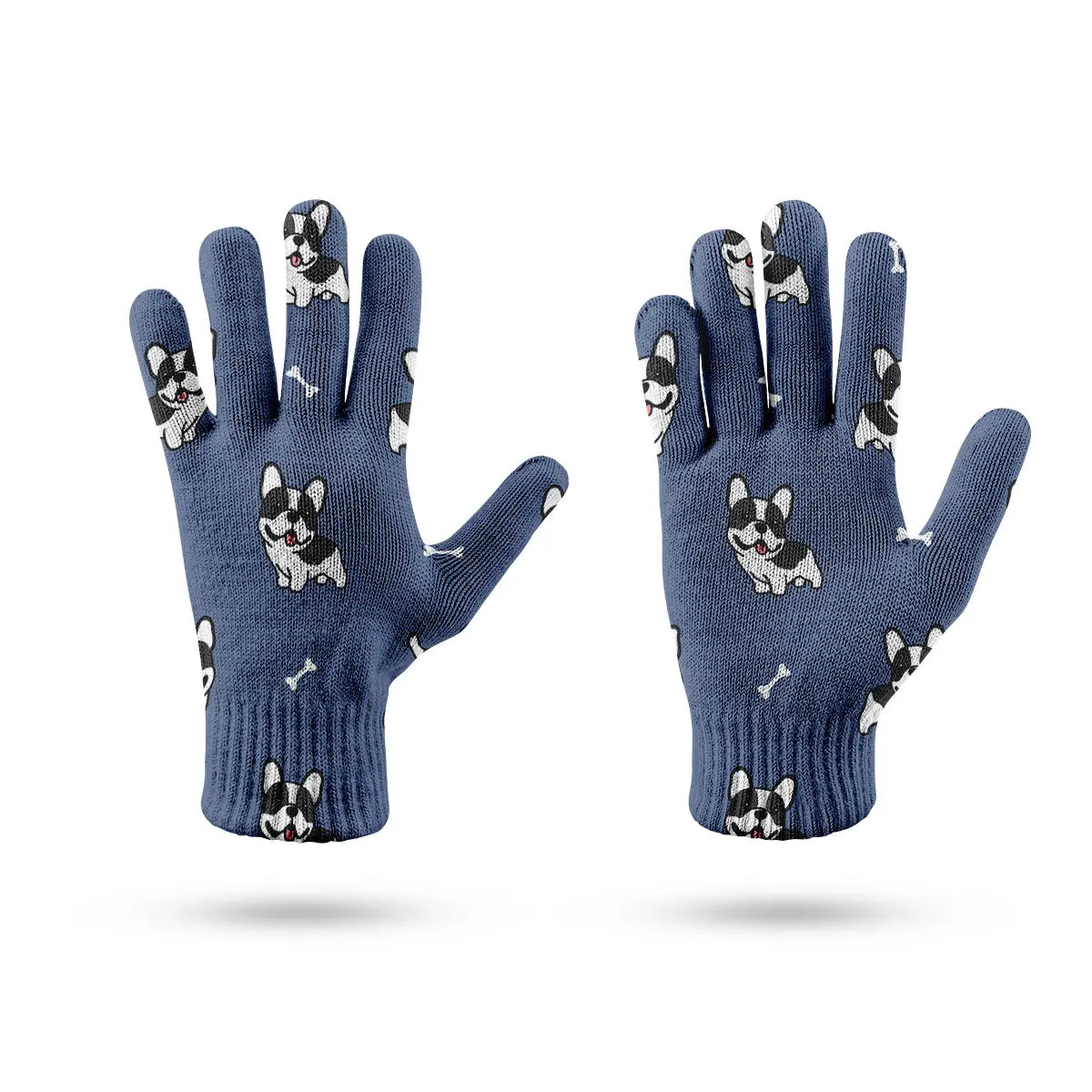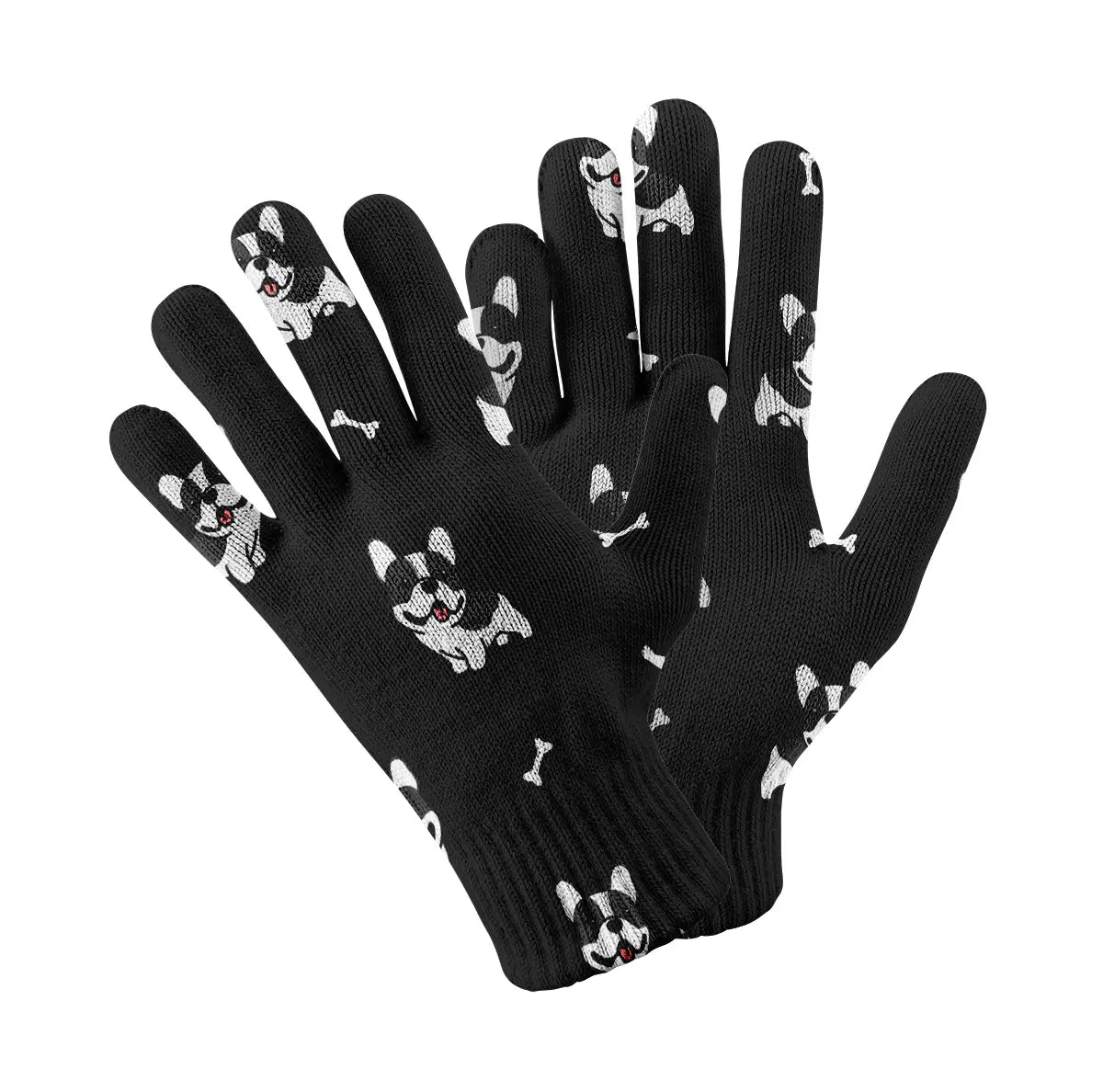 Playful Black and White Frenchie Deligh Touch Screen Gloves