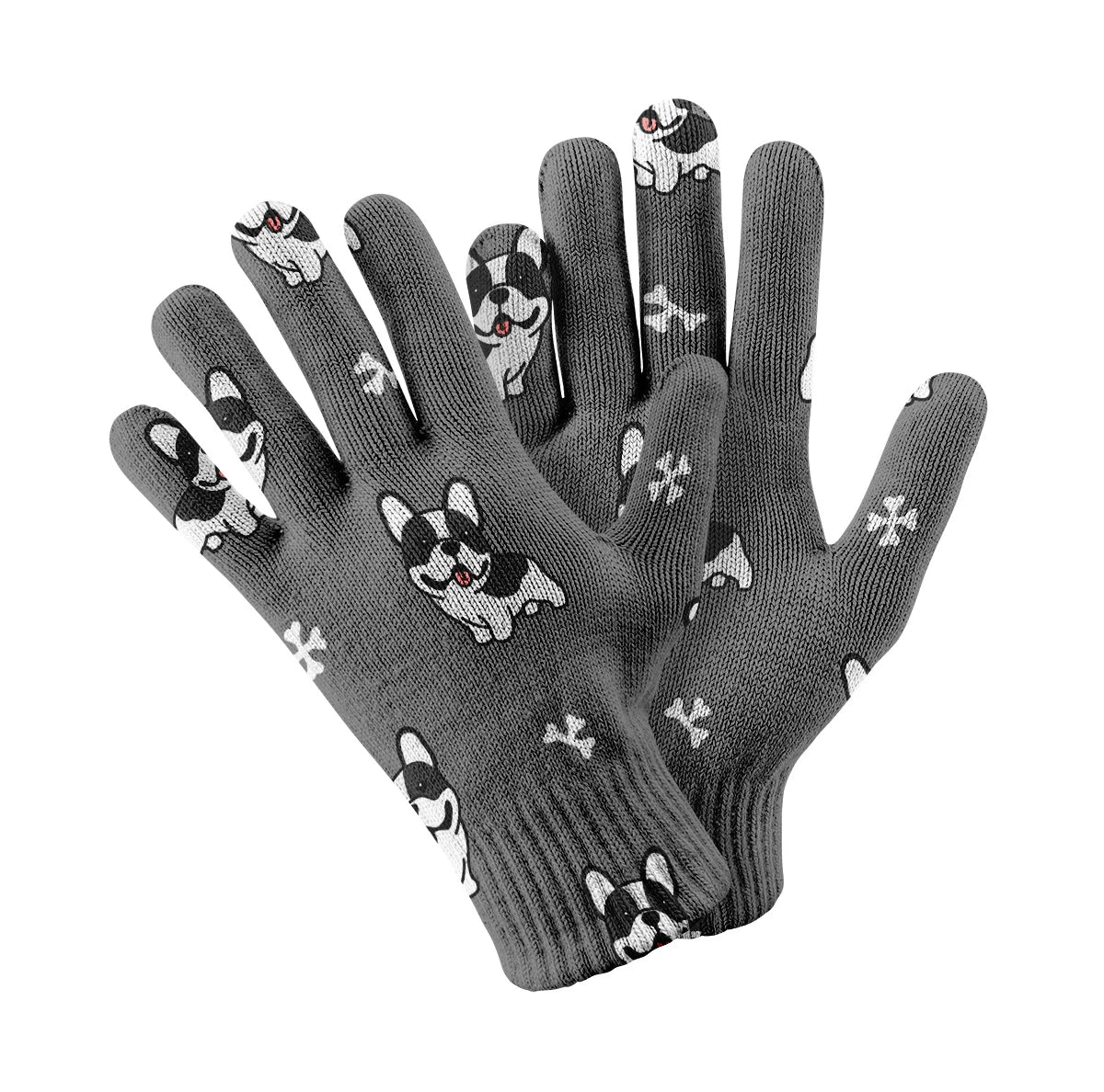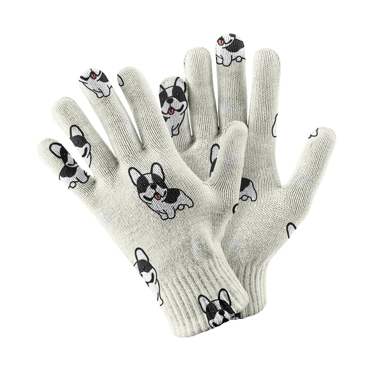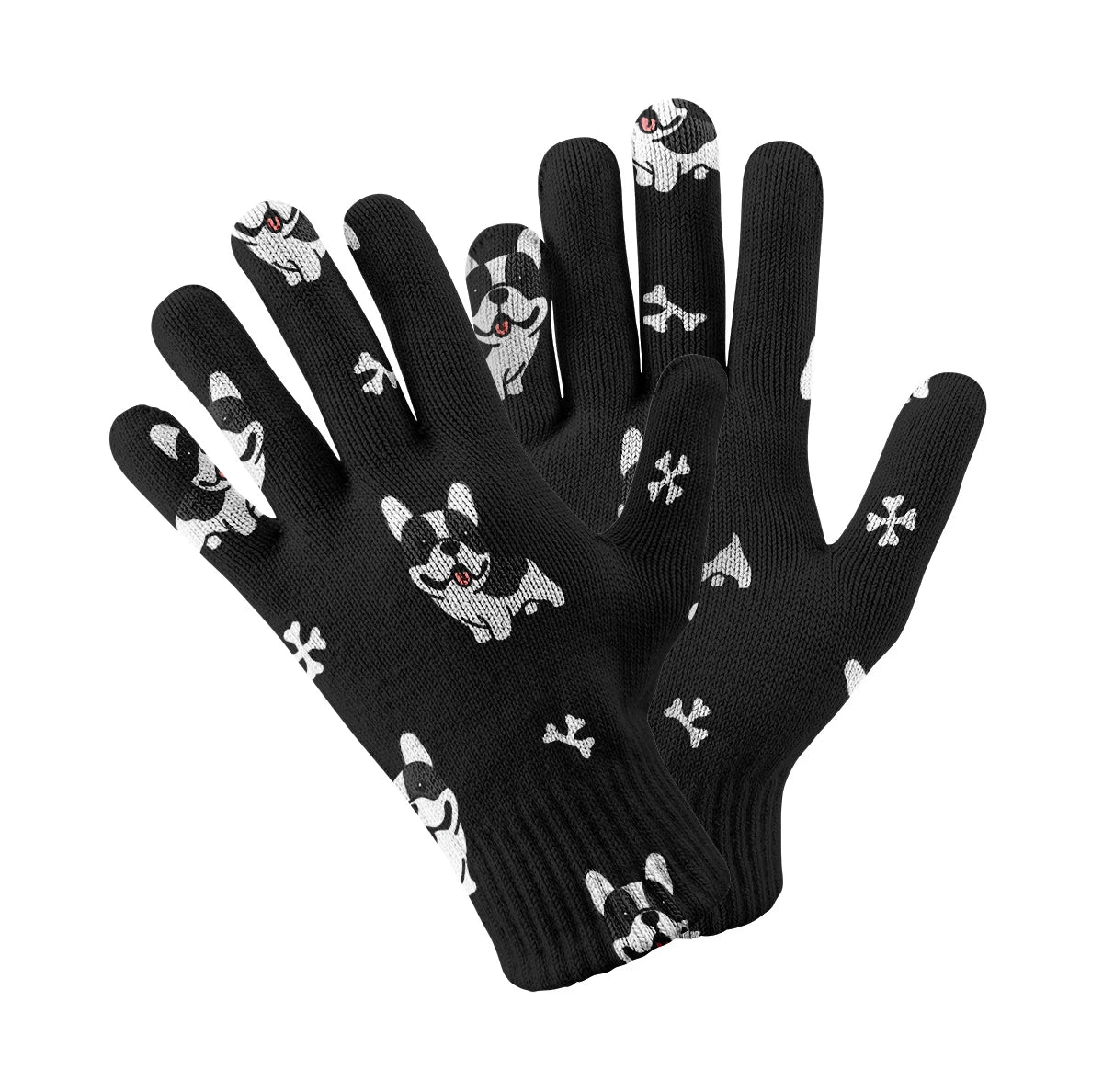 Playful Black and White Frenchie Delight Touch Screen Gloves