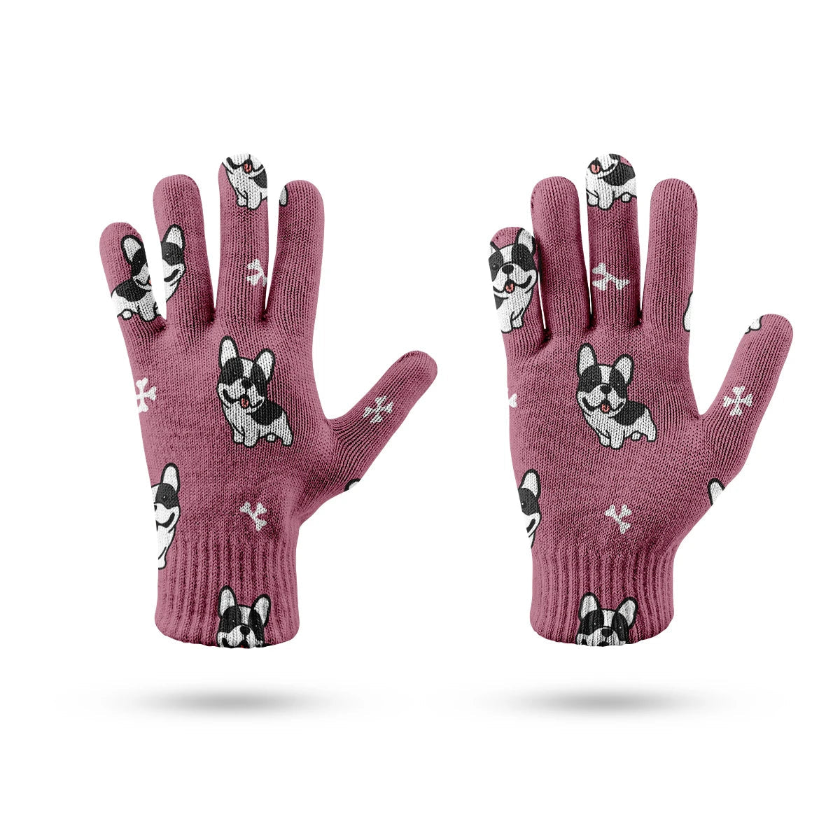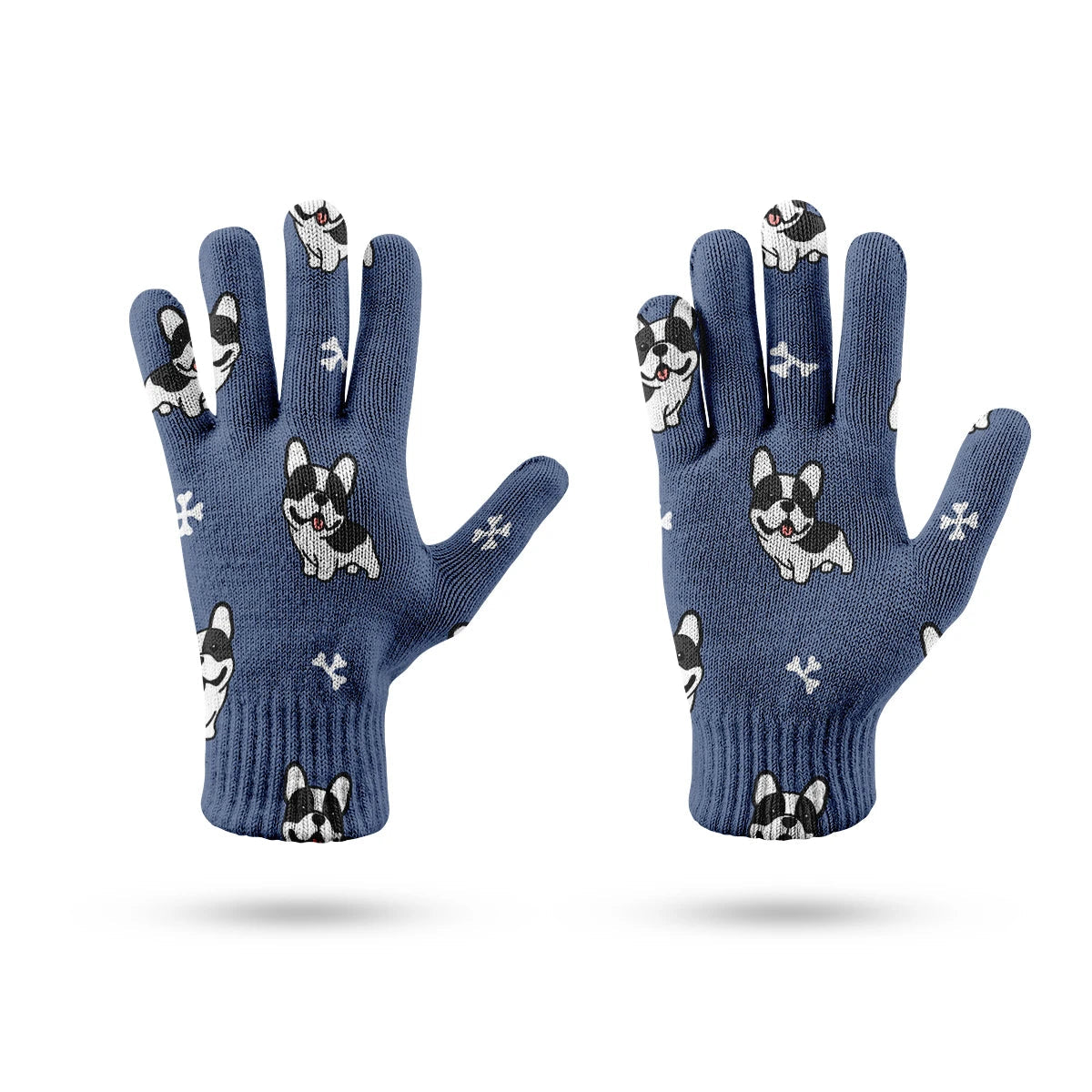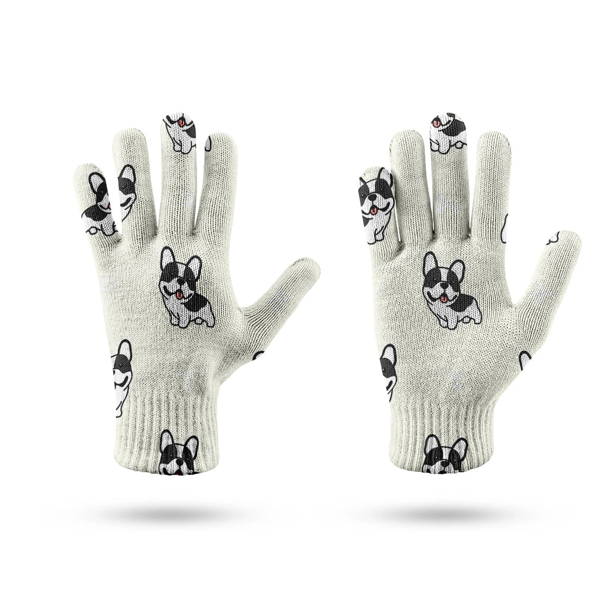 Playful Black and White Frenchie Delight Touch Screen Gloves