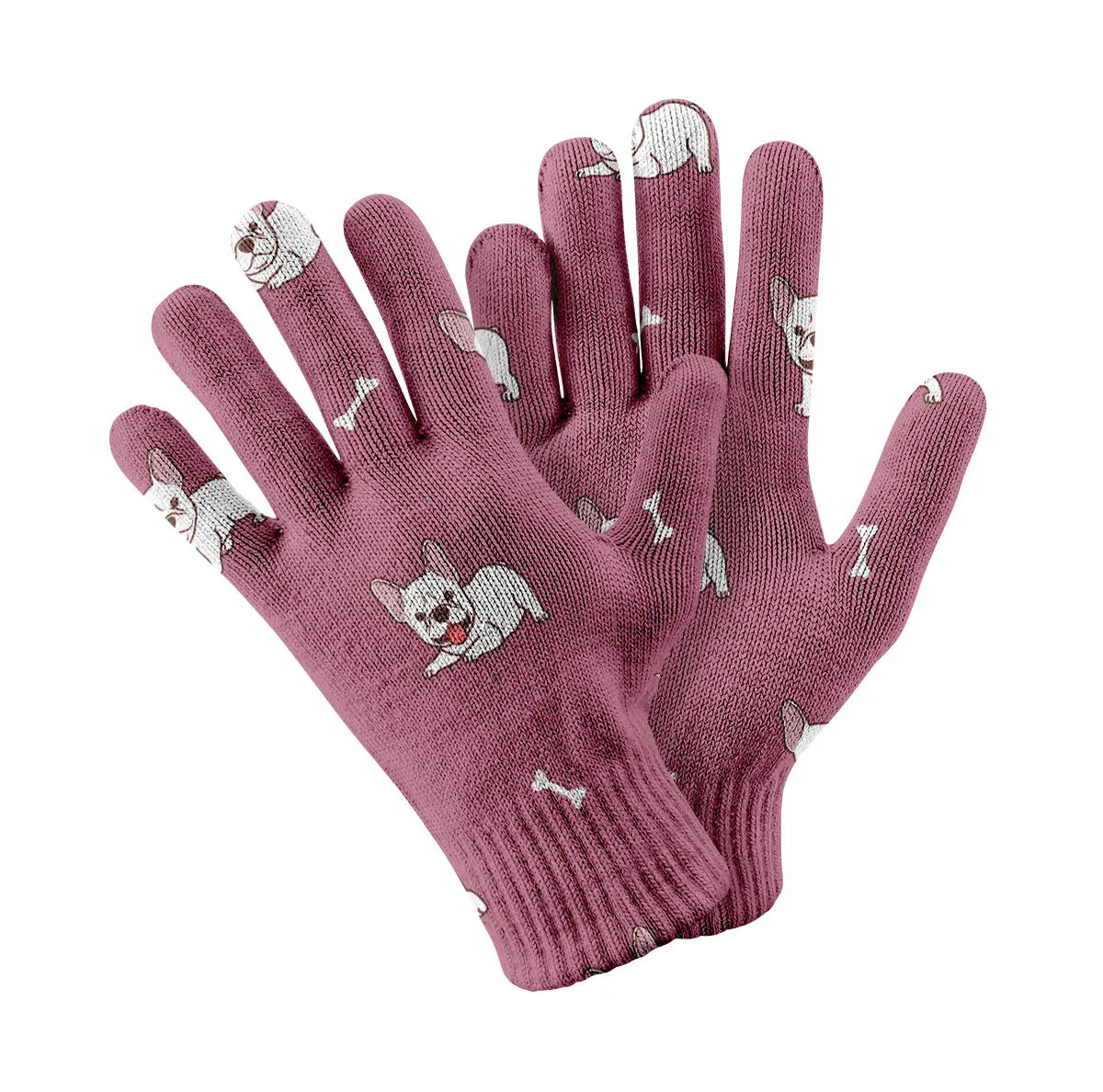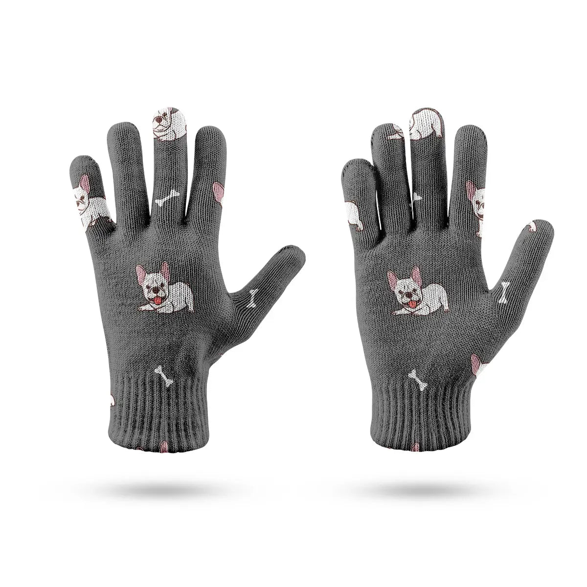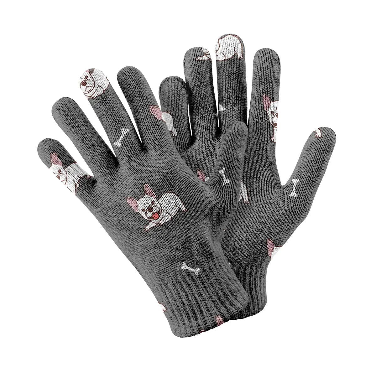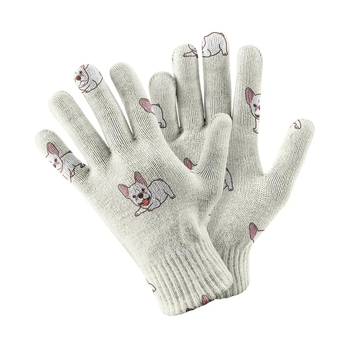 Stay stylish and connected with our Playful White Frenchie Charm Touch Screen Gloves.