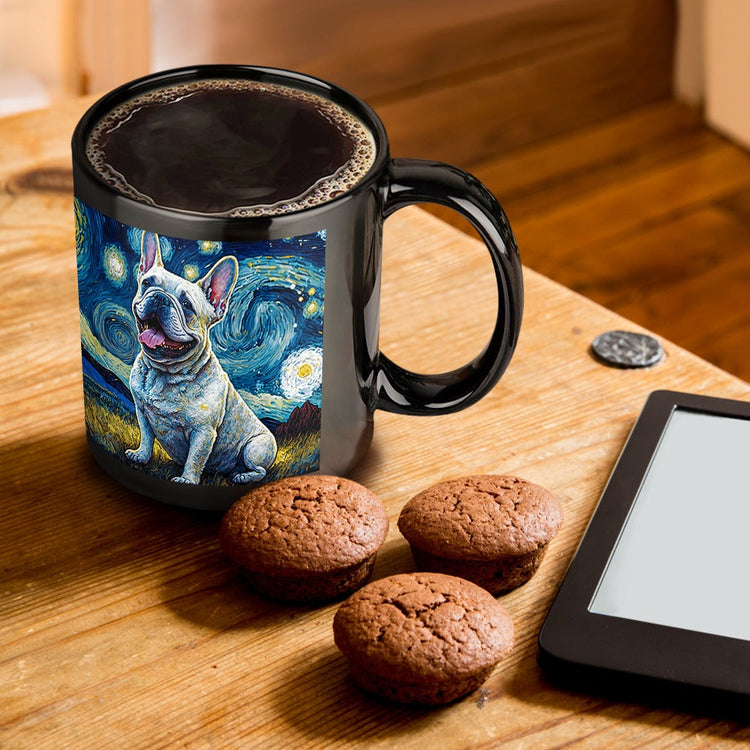 Immerse yourself in the artistic world with our Starry Night White Frenchie Coffee Mug.