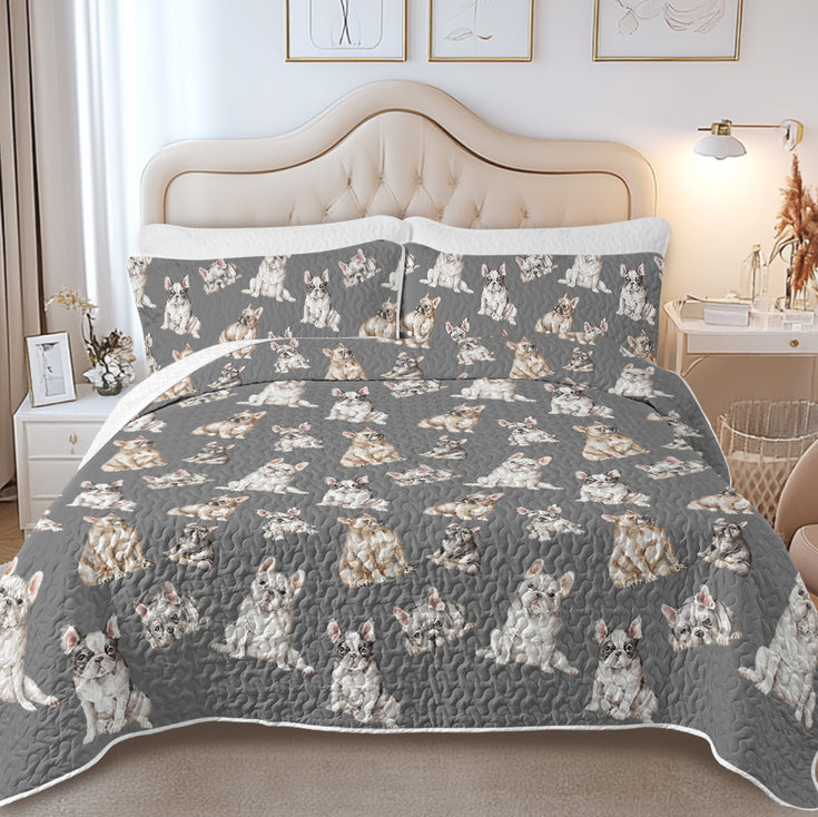 Watercolor Symphony French Bulldogs Quilted Bedding Set