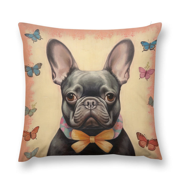 Embrace the serene beauty and spirited charm of the French Bulldog with our "Butterfly Whispers" Black French Bulldog Plush Pillow Case.