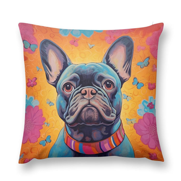 Adorn your home with this plush pillow case and let the enchanting visual symphony of bold and pastel hues, symbolizing the robust character and gentle demeanor of the French Bulldog, infuse your living space with warmth and creativity.