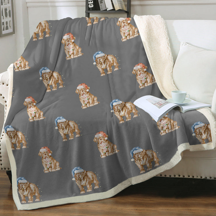 Watercolor French Mastiff Puppies Christmas Fleece Blanket - 8 Colors