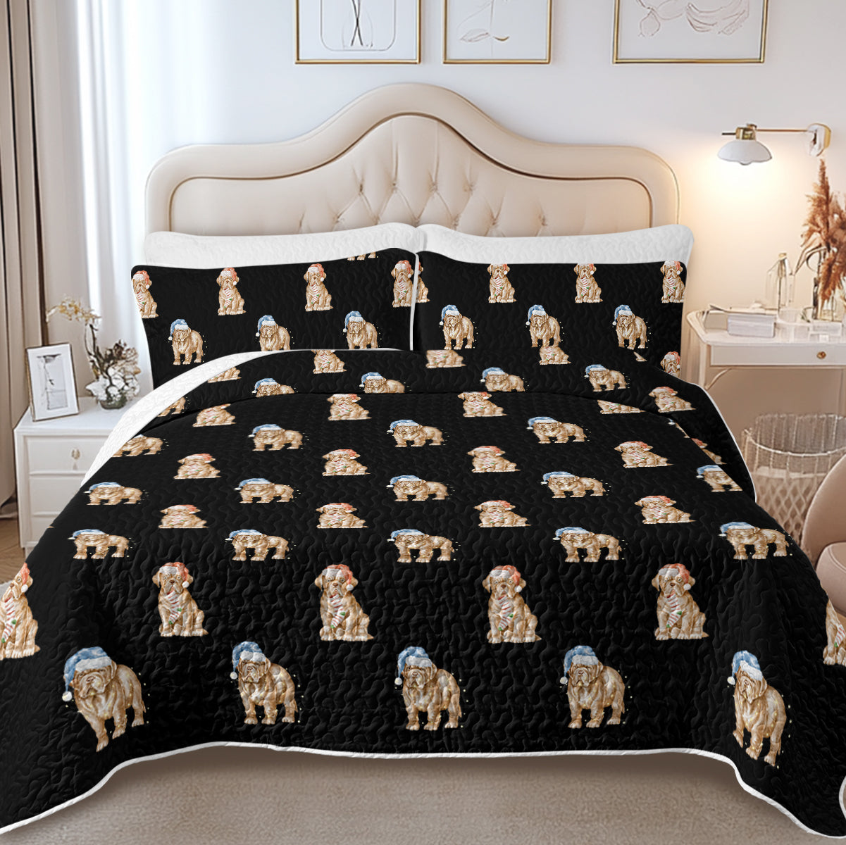 Watercolor French Mastiff Puppies Christmas Quilted Bedding Set