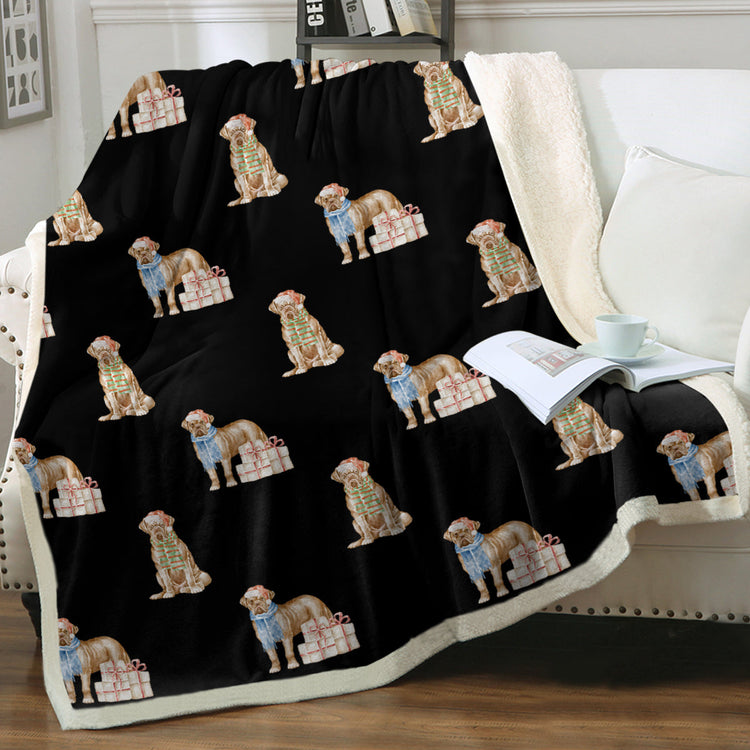 Watercolor Merriment French Mastiff Christmas Fleece Blanket - 8 Colors-Blanket-Bedding, Blankets, Christmas, French Mastiff, Home Decor-1