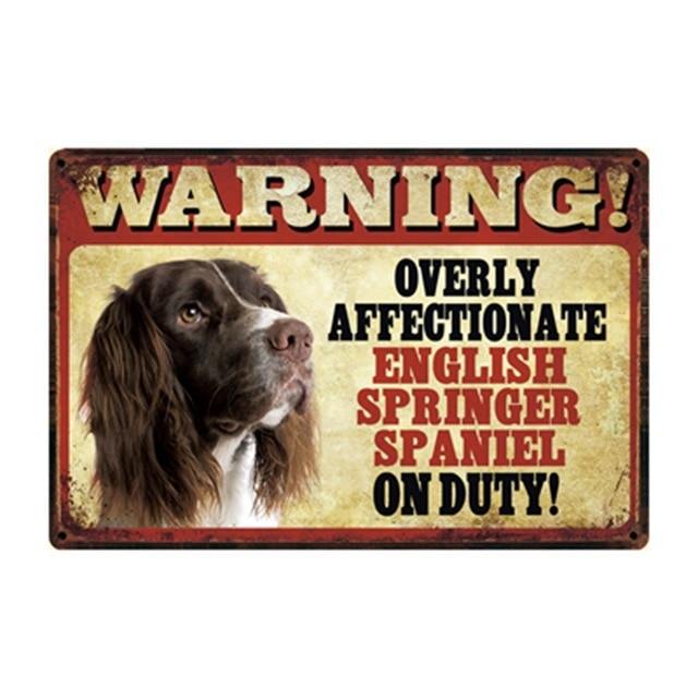 Bring a smile to your face with our Warning Overly Affectionate English Springer Spaniel on Duty Tin Poster! This charming piece is perfect for dog lovers who want to showcase their affection for this lovable breed.