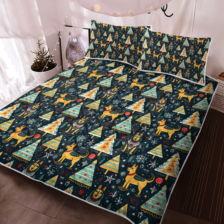 Celebrate the festive season with the Christmas Groove Guardian German Shepherds Quilt Blanket Bedding Set!