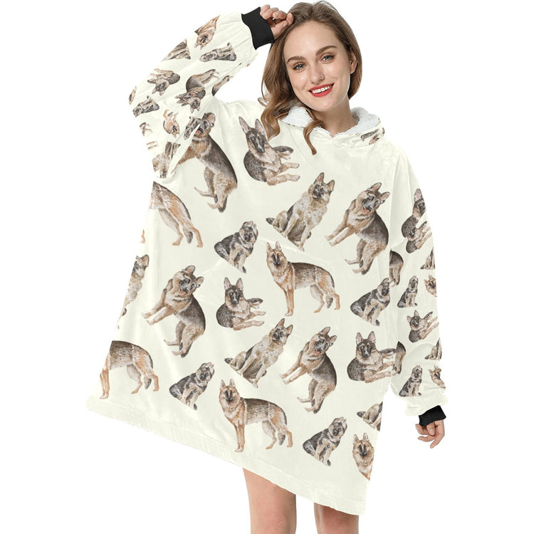 Watercolor Celebration German Shepherds Blanket Hoodie-Blanket-Apparel, Blanket Hoodie, Blankets, Dog Mom Gifts, German Shepherd-10