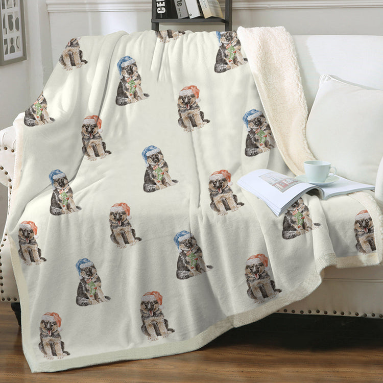German Shepherds Christmas Blanket - Watercolor German Shepherds Puppies Christmas - Sherpa Fleece