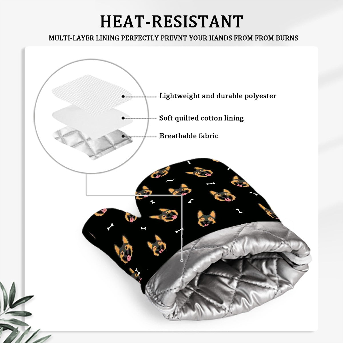 The non-slip silicone palm ensures you can handle hot pots and baking sheets with total confidence. Whether baking treats or grilling, these mitts are designed with both German Shepherds and people in mind.