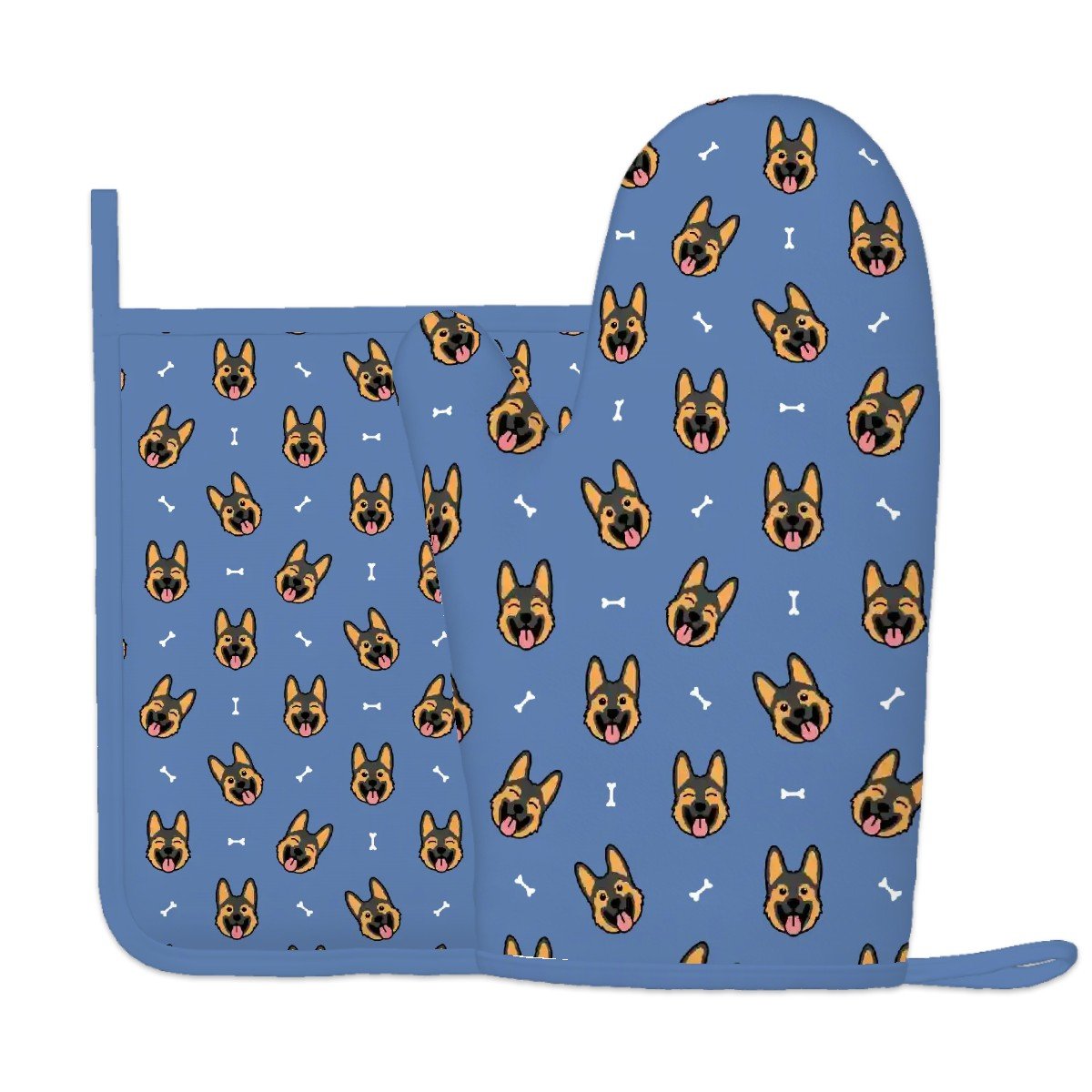 Beaming German Shepherd Love Oven Mitts and Pot Holder Set