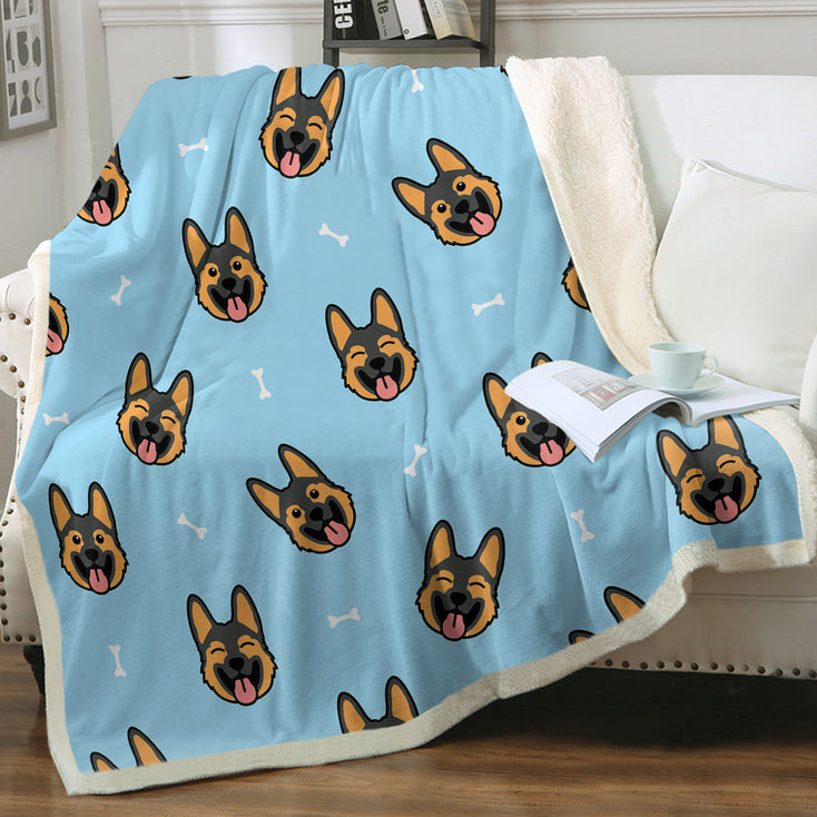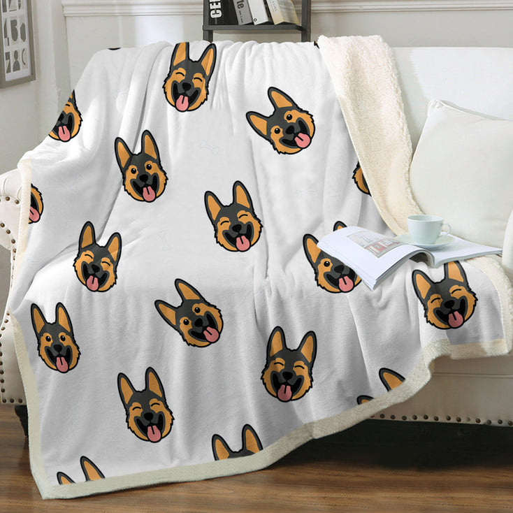 Our delightful blanket features the most heartwarming smiling German Shepherds, capturing the breed's playful and loyal characteristics. Designed with both German Shepherds and people in mind, this blanket brings not just warmth but an instant mood lift with its jovial design.