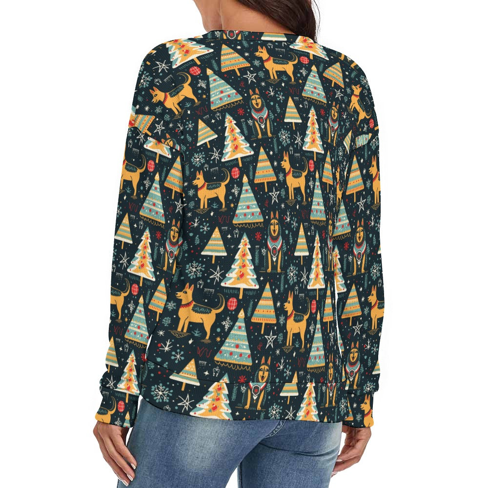 Groove Guardian German Shepherds Women's V-Neck Christmas Sweater