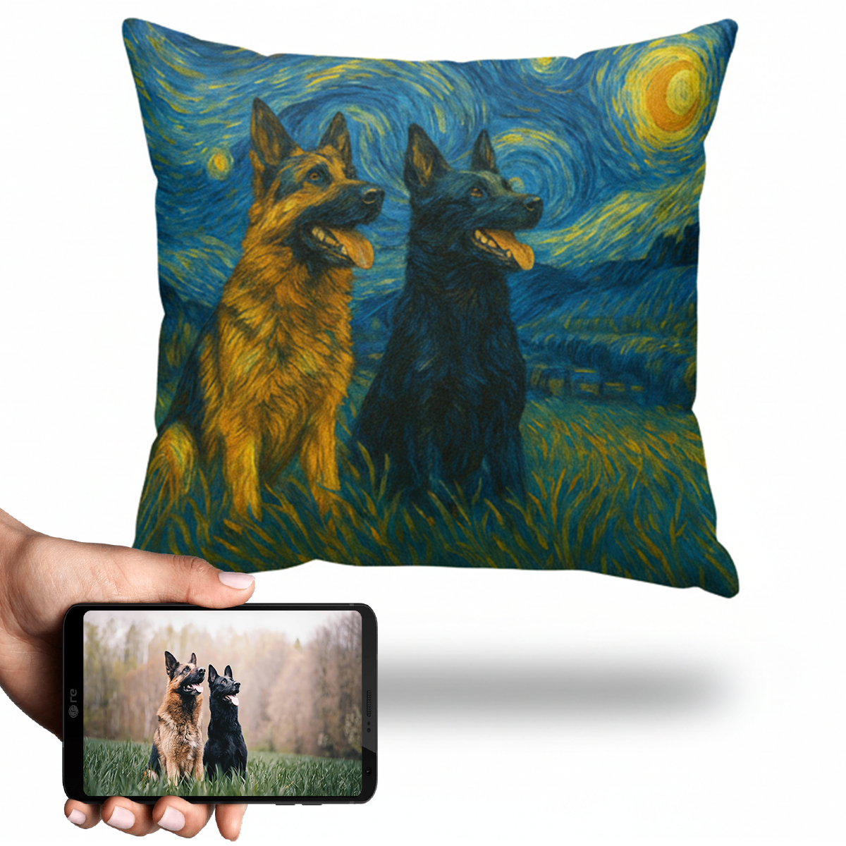 Transform your love for your German Shepherd into a stunning piece of art with our Personalized Starry Night Artwork Custom German Shepherd Pillowcase. This unique creation captures the essence of your furry friend in Van Gogh's iconic style, making it a heartfelt addition to your home.