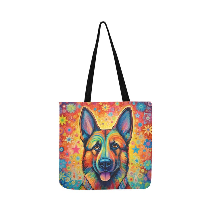 Immerse yourself in the vibrant essence of the German Shepherd with our "Radiant Guardian German Shepherd Shopping Tote Bag."
