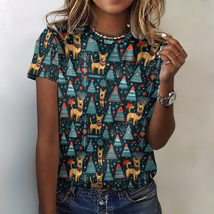 This Reindeer Games German Shepherds Christmas Women's Cotton T-Shirt captures the heartwarming essence of festive cheer. Featuring playful German Shepherds adorned with reindeer antlers, this shirt is a delightful nod to the joy and companionship pets bring during the holidays.