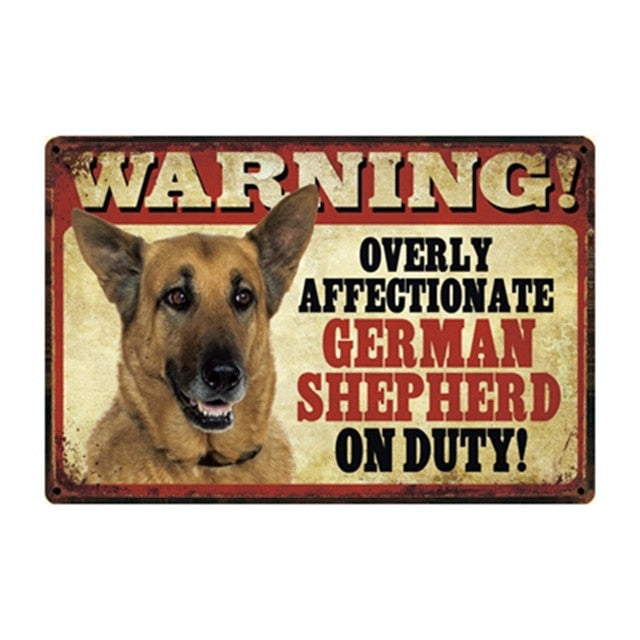 Show your love for your furry friend with our Warning Overly Affectionate German Shepherd on Duty Tin Poster! This charming piece is perfect for dog lovers who want to celebrate the special bond with their loyal companions.