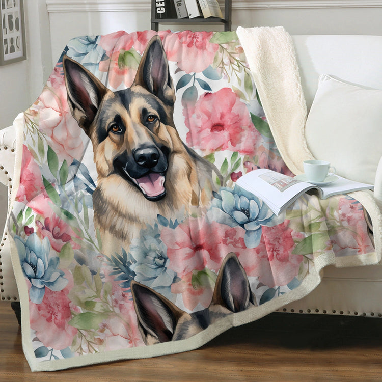Watercolor Flower Garden German Shepherd Fleece Blanket