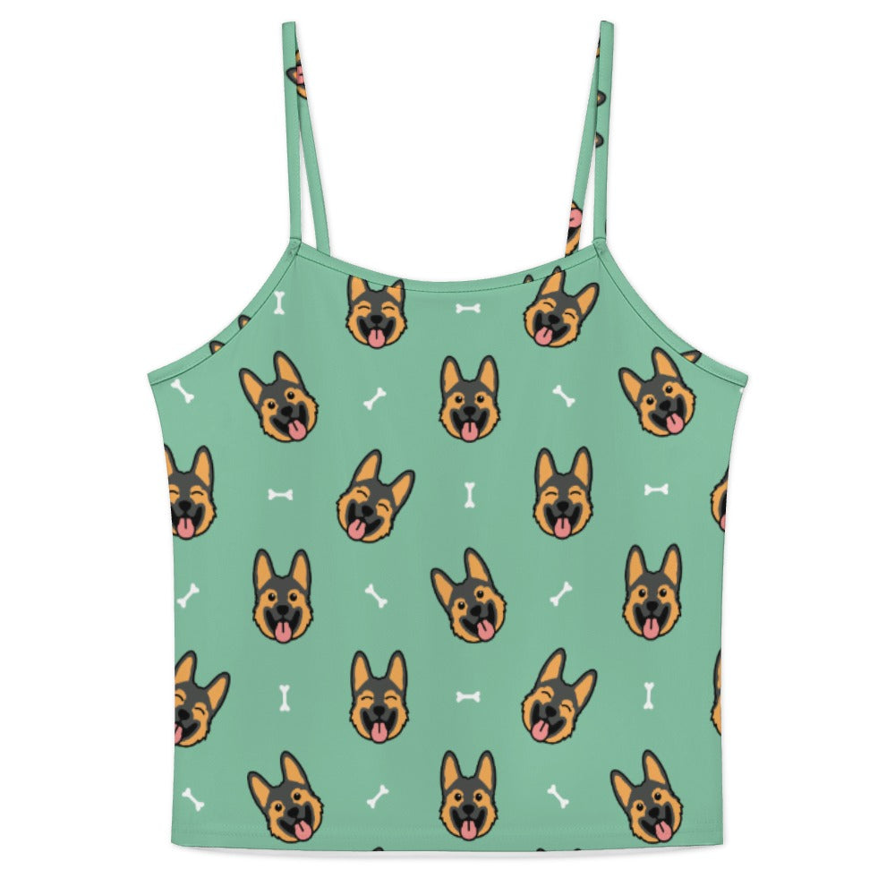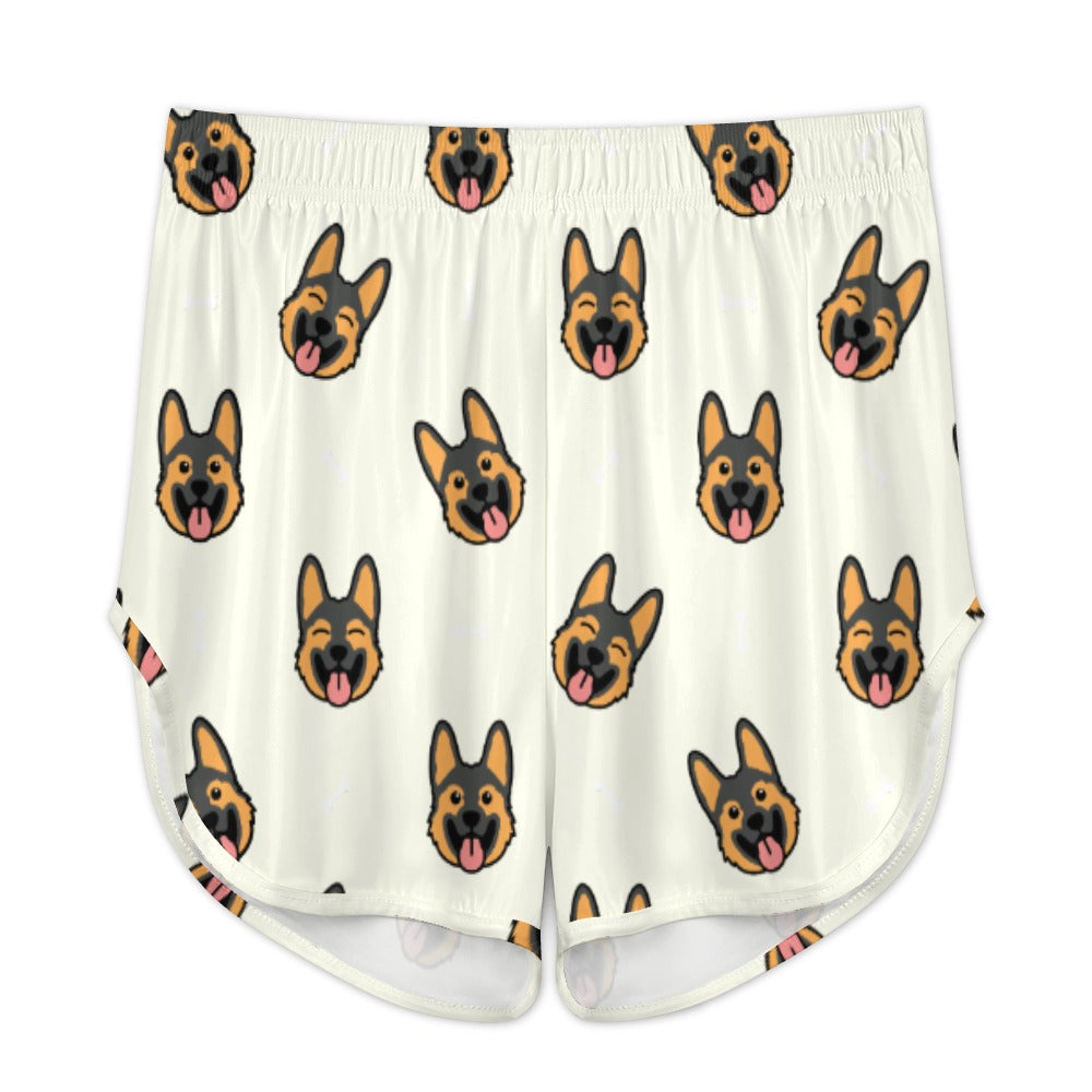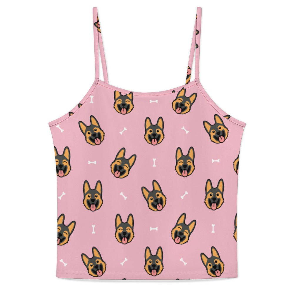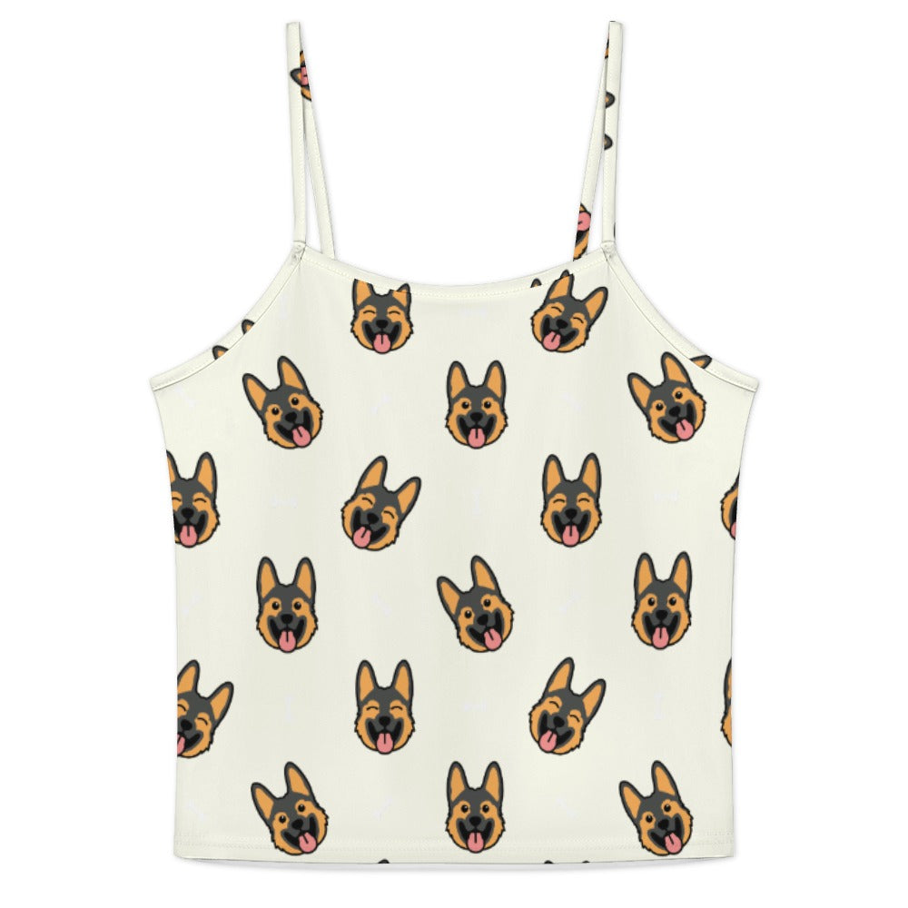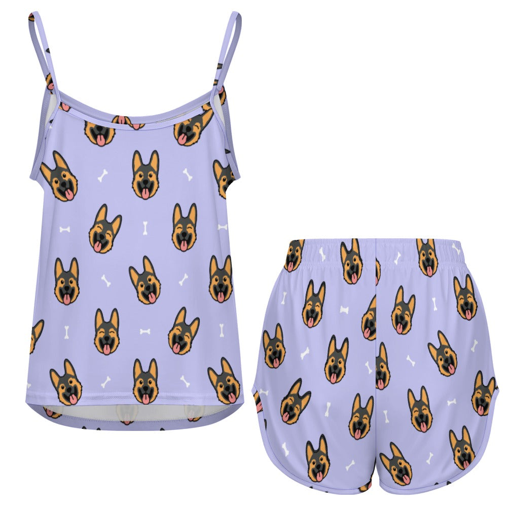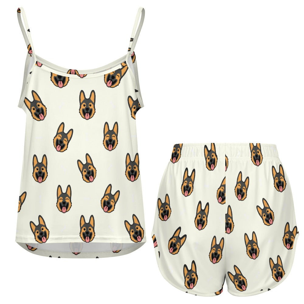 Celebrate your love for German Shepherds with our Beaming German Shepherd Women's Cami and Shorts Pajama Set! This delightful set features playful German Shepherd faces with tongues out, creating a lively and cheerful pattern that brings joy to your loungewear.