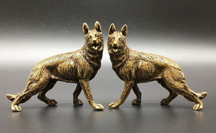Twin German Shepherds Miniature Brass Figurines - 2 PcsHome Decor