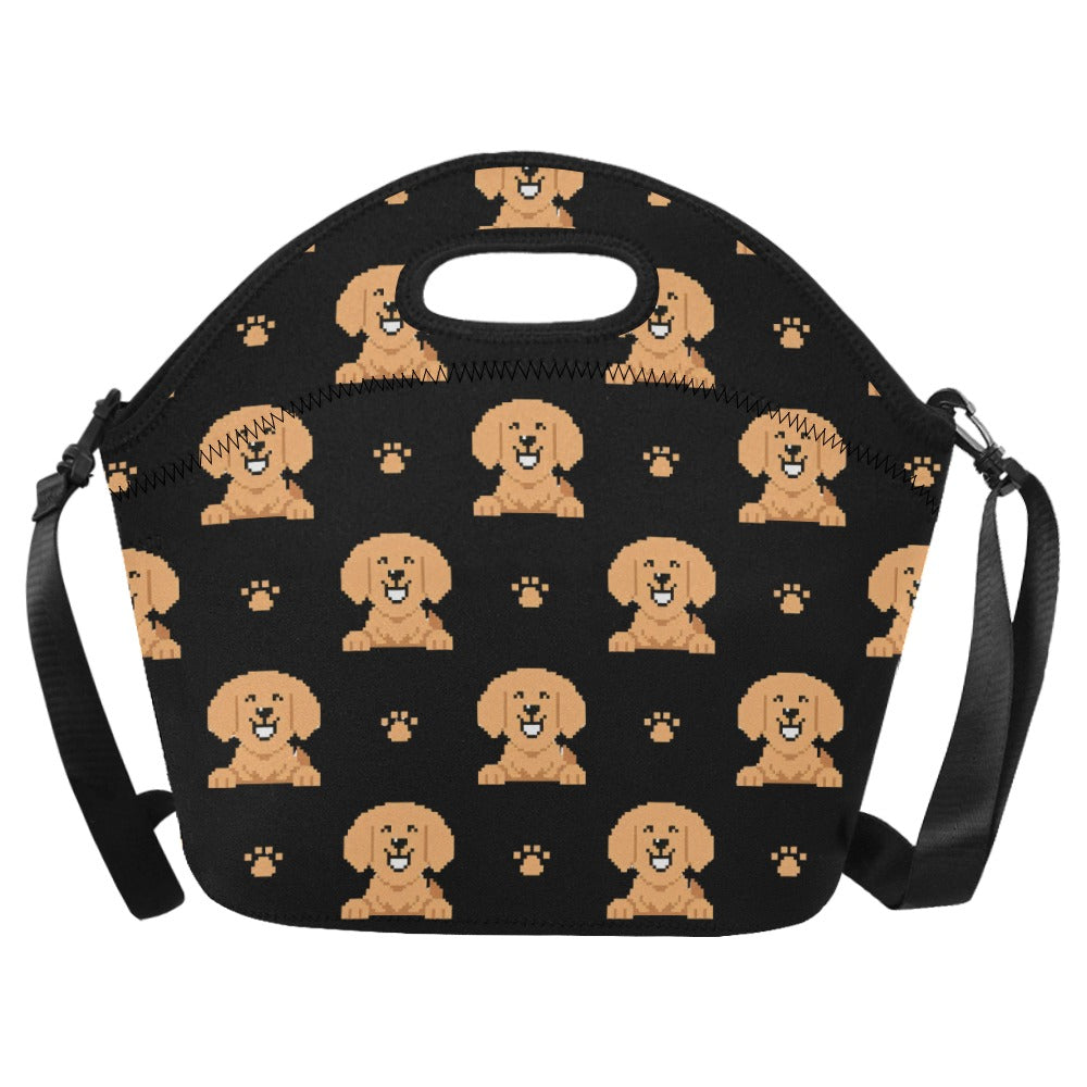 Cheerful Golden Retriever Puppy Neoprene Lunch Bag-12