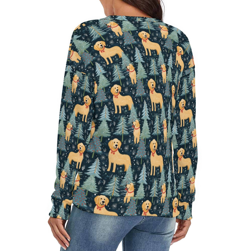 Celebrate the joy of winter with our Golden Retriever Winter Forest Fest Women's V-Neck Christmas Sweater, a perfect blend of warmth and festive spirit.