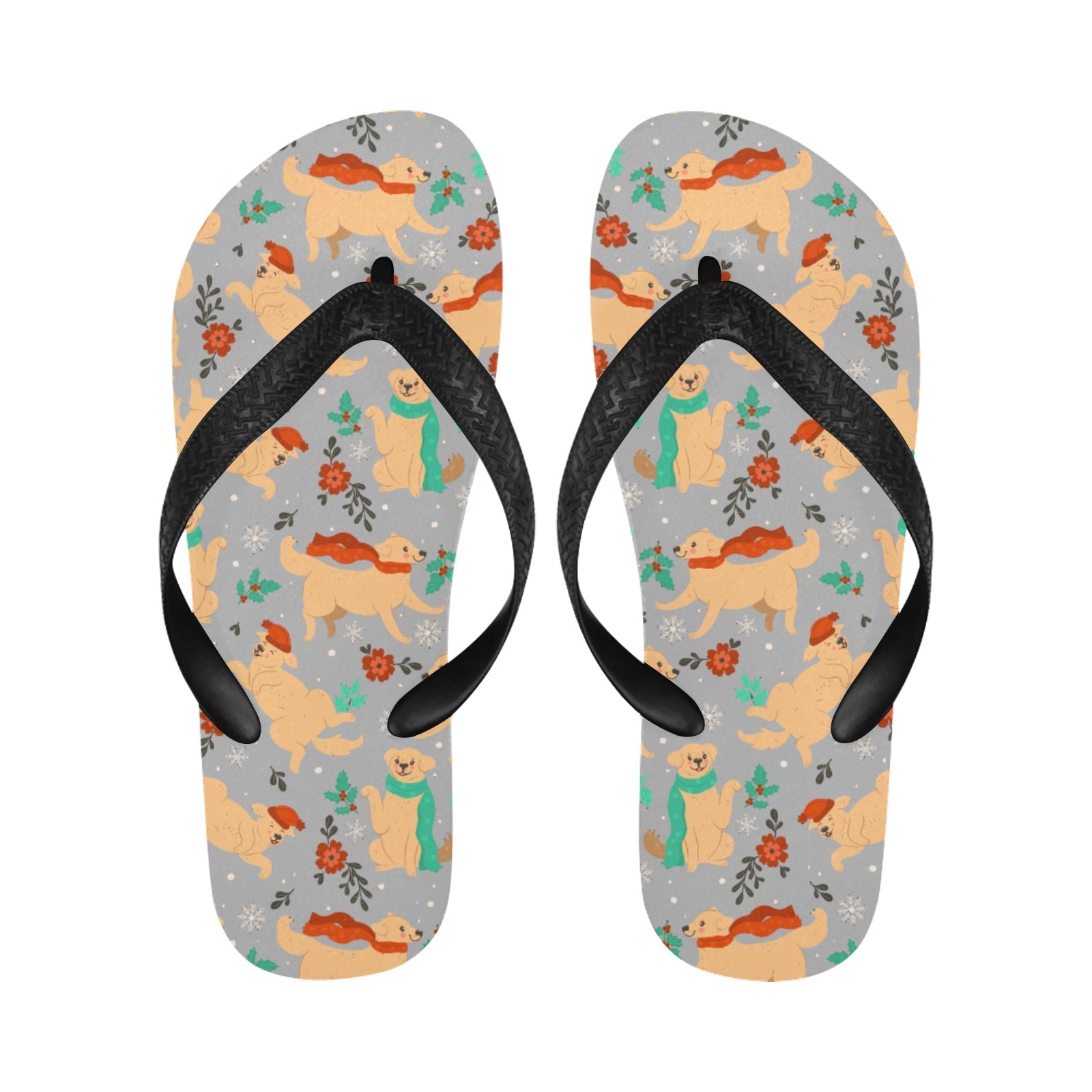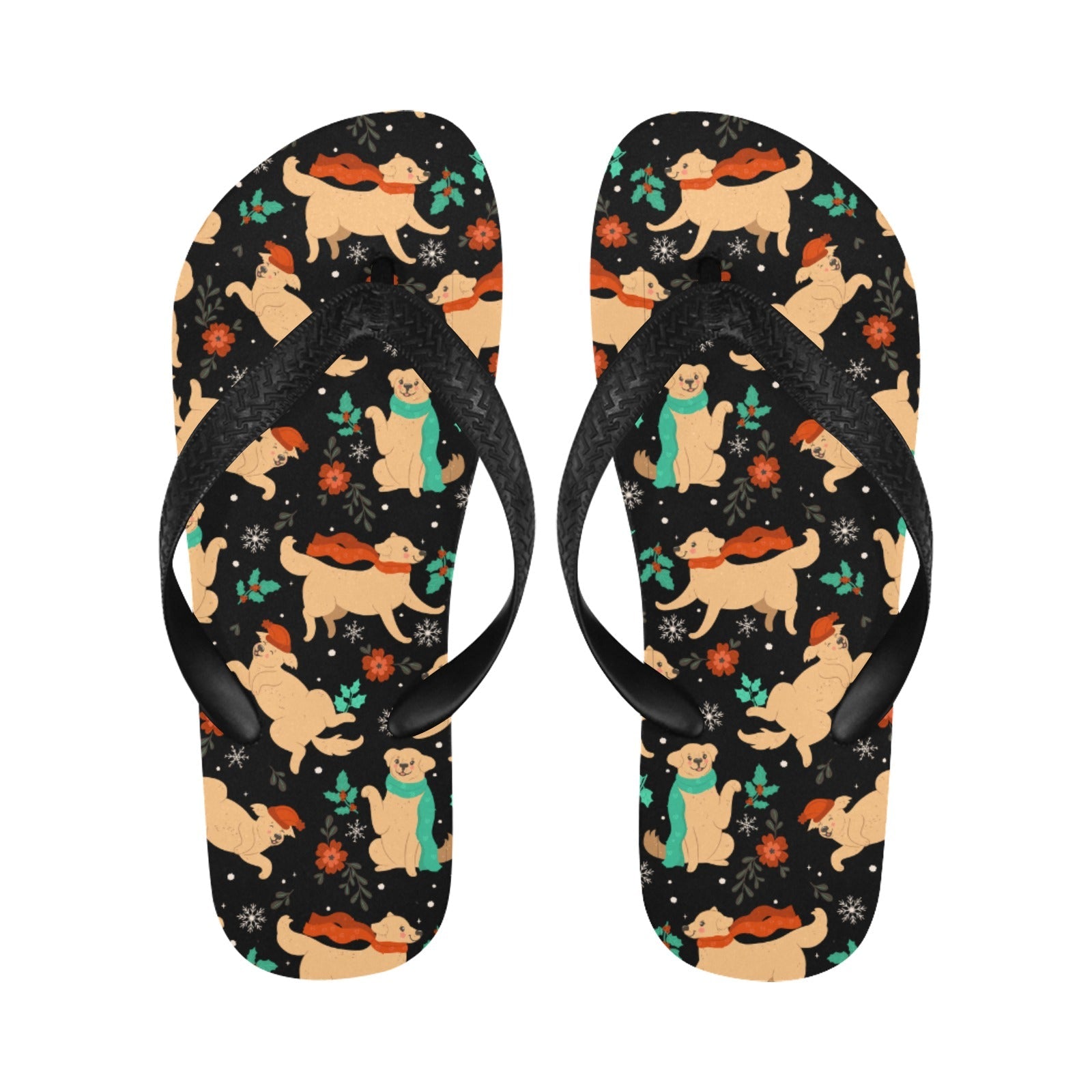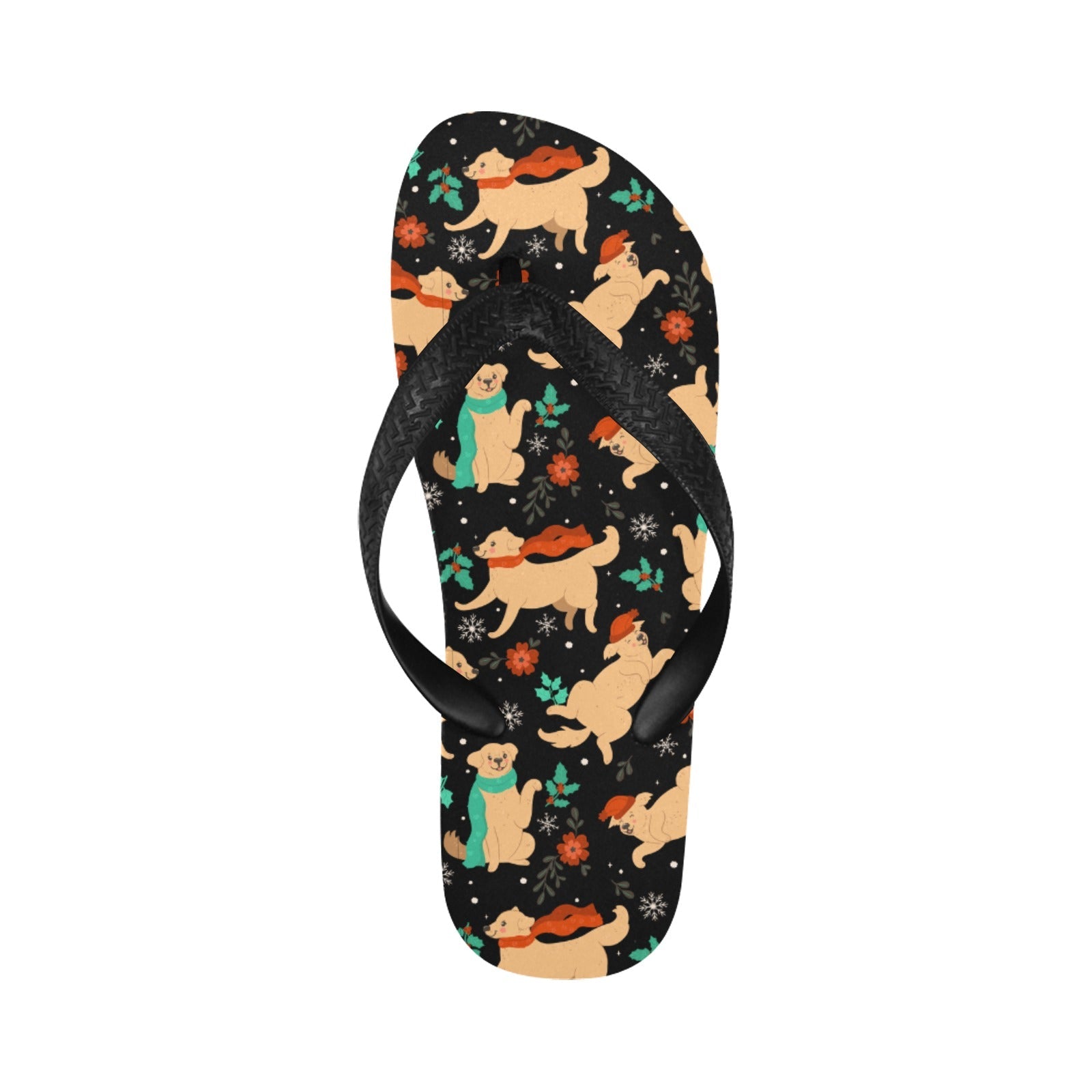 Merry Merry Golden Retriever Christmas Unisex Slippers-Black-S-25