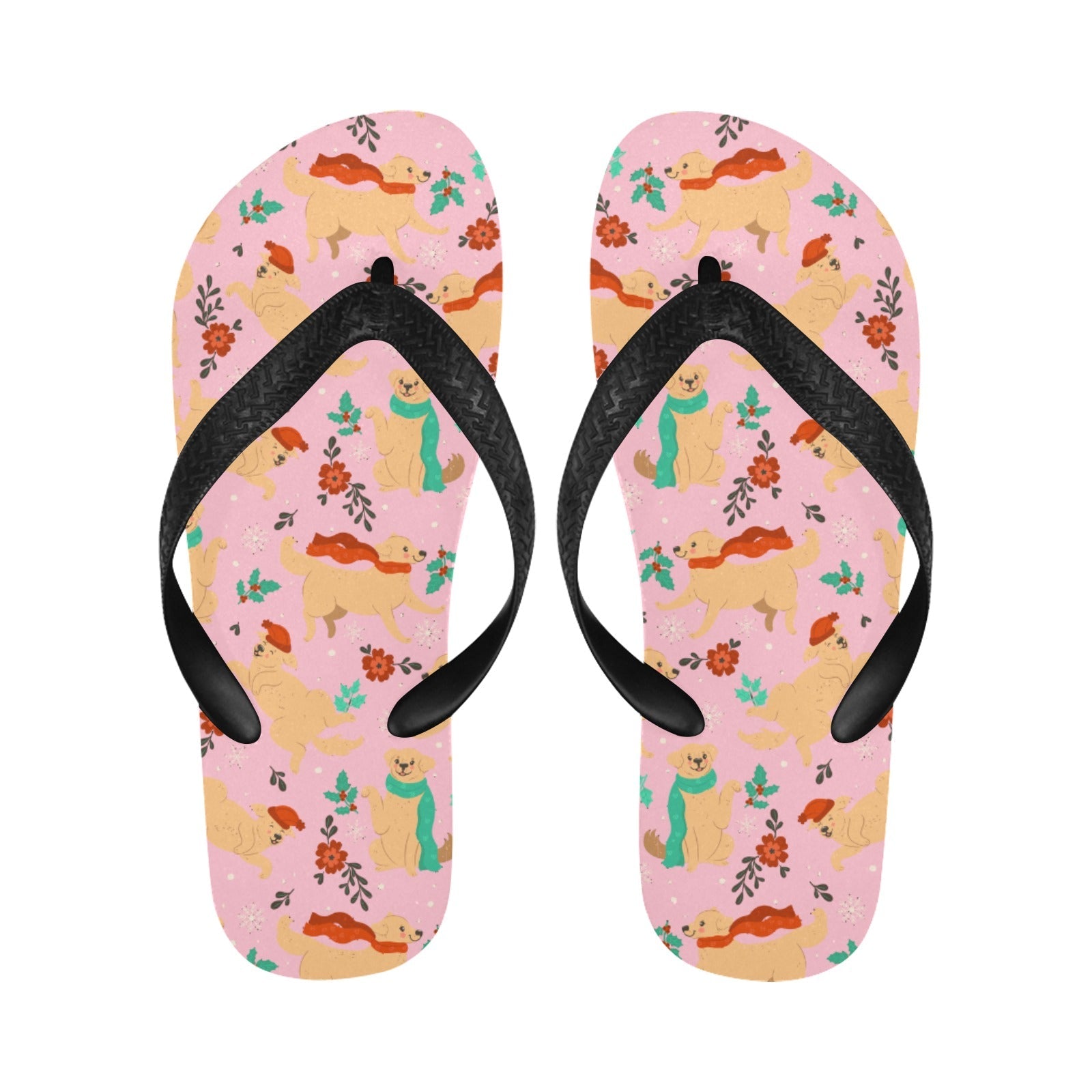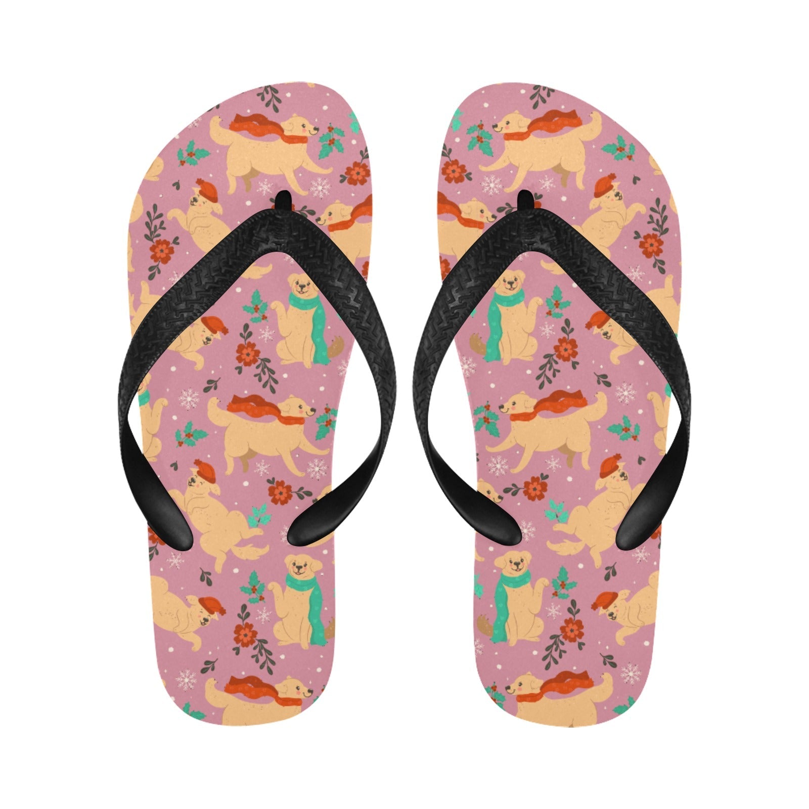 Merry Merry Golden Retriever Christmas Unisex Slippers-Pink-S-2