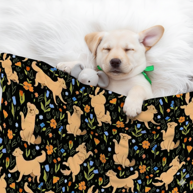Flower Garden Yellow Labrador Blanket for Dog