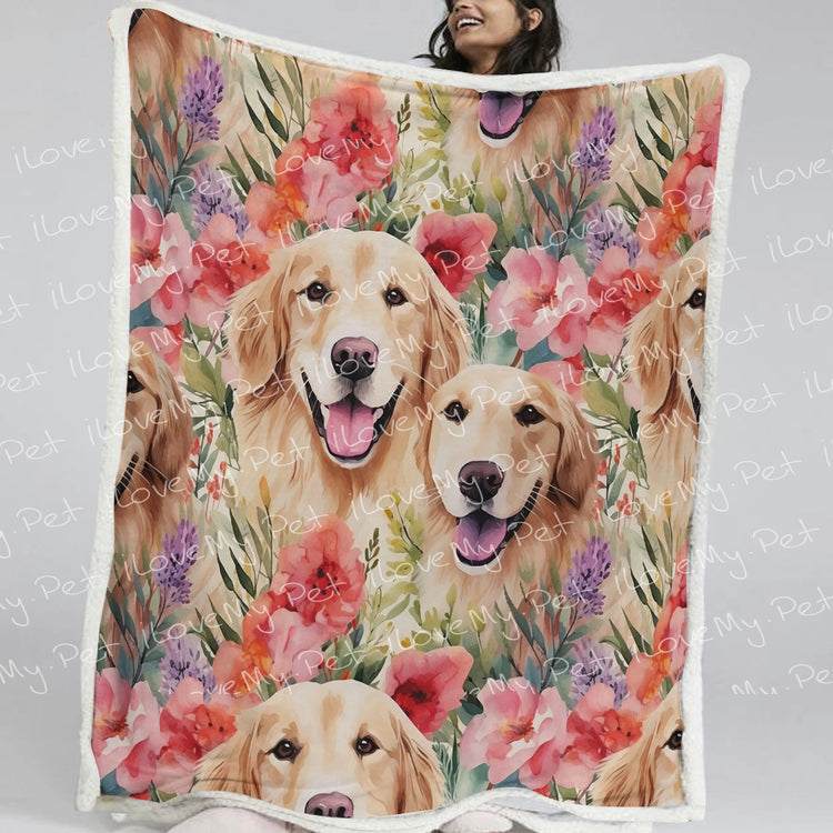 Golden Retriever Blanket - Sherpa Fleece - Golden Retriever Mom and Baby Bloom