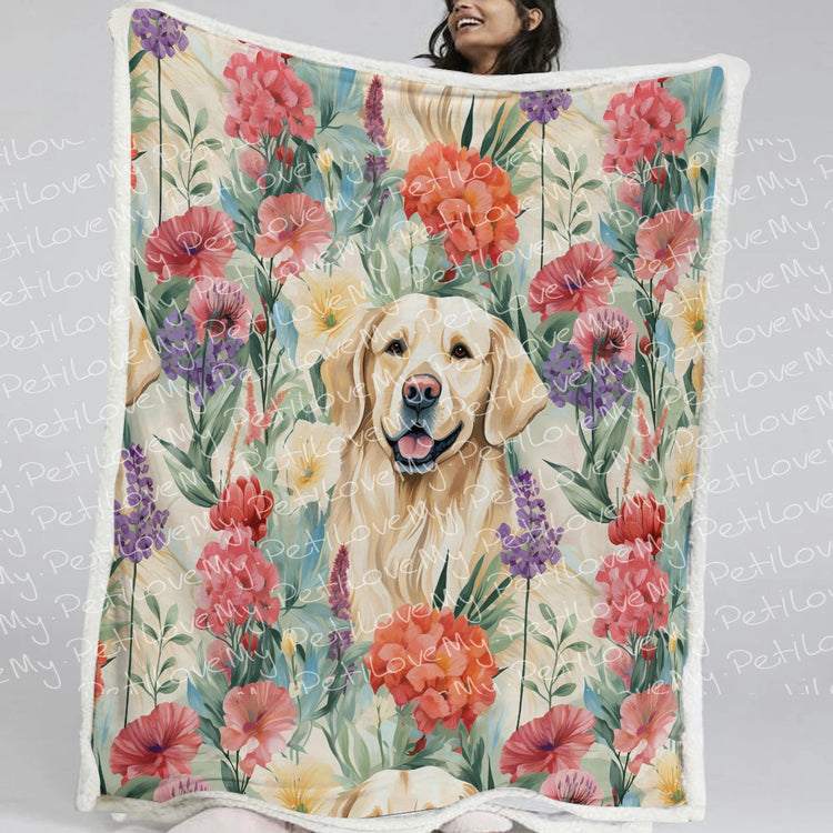 Golden Retriever Blanket - Sherpa Fleece - Golden Retriever's Blooming Symphony