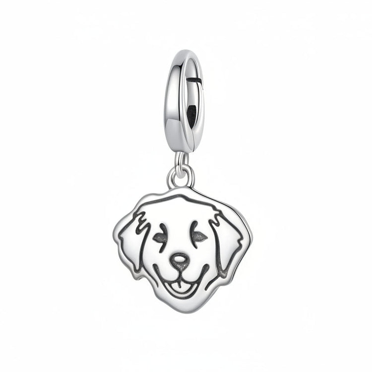Capture the sunshine spirit of a Golden Retriever in one heart-melting silver charm.