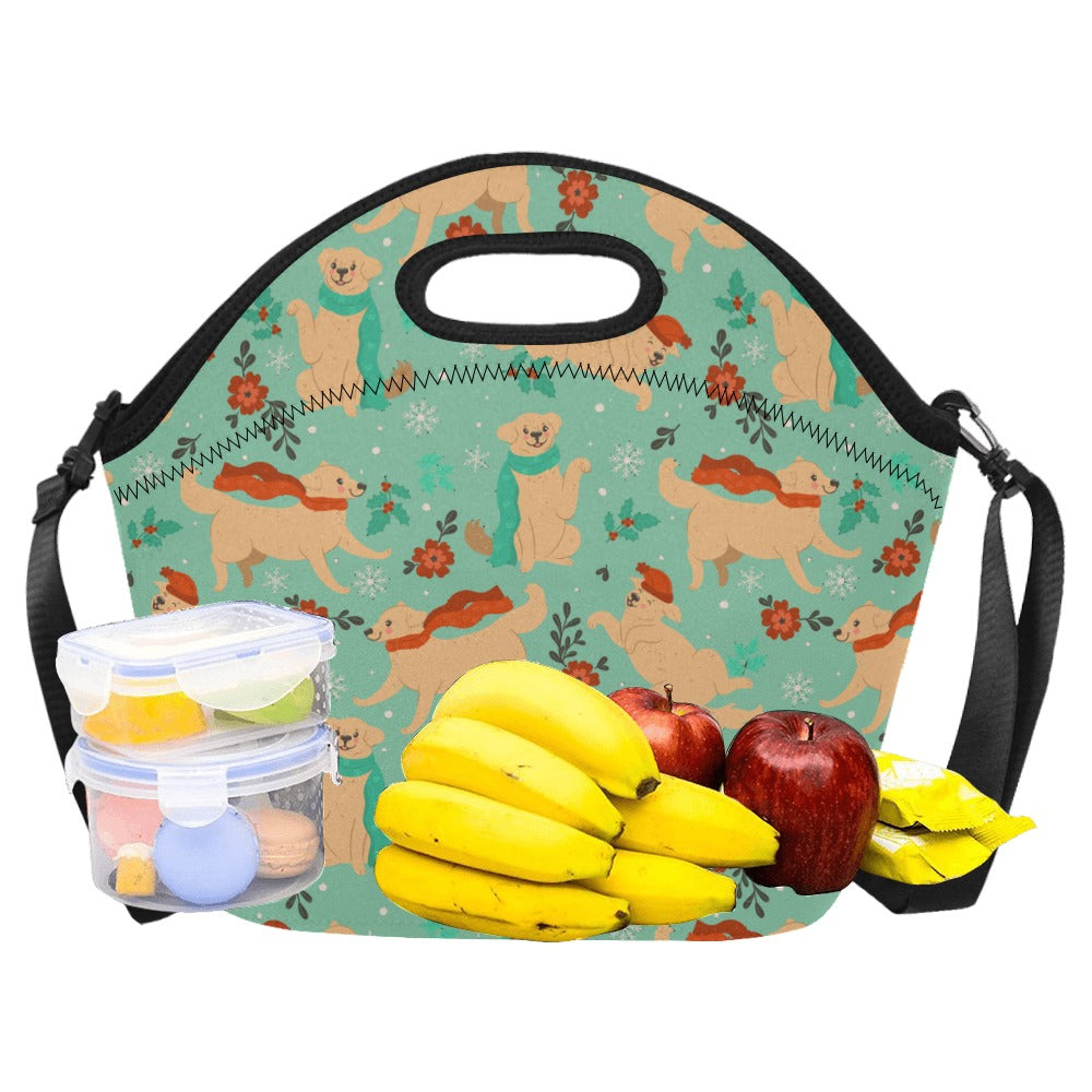 Merry Merry Golden Retriever Christmas Neoprene Lunch Bag-22