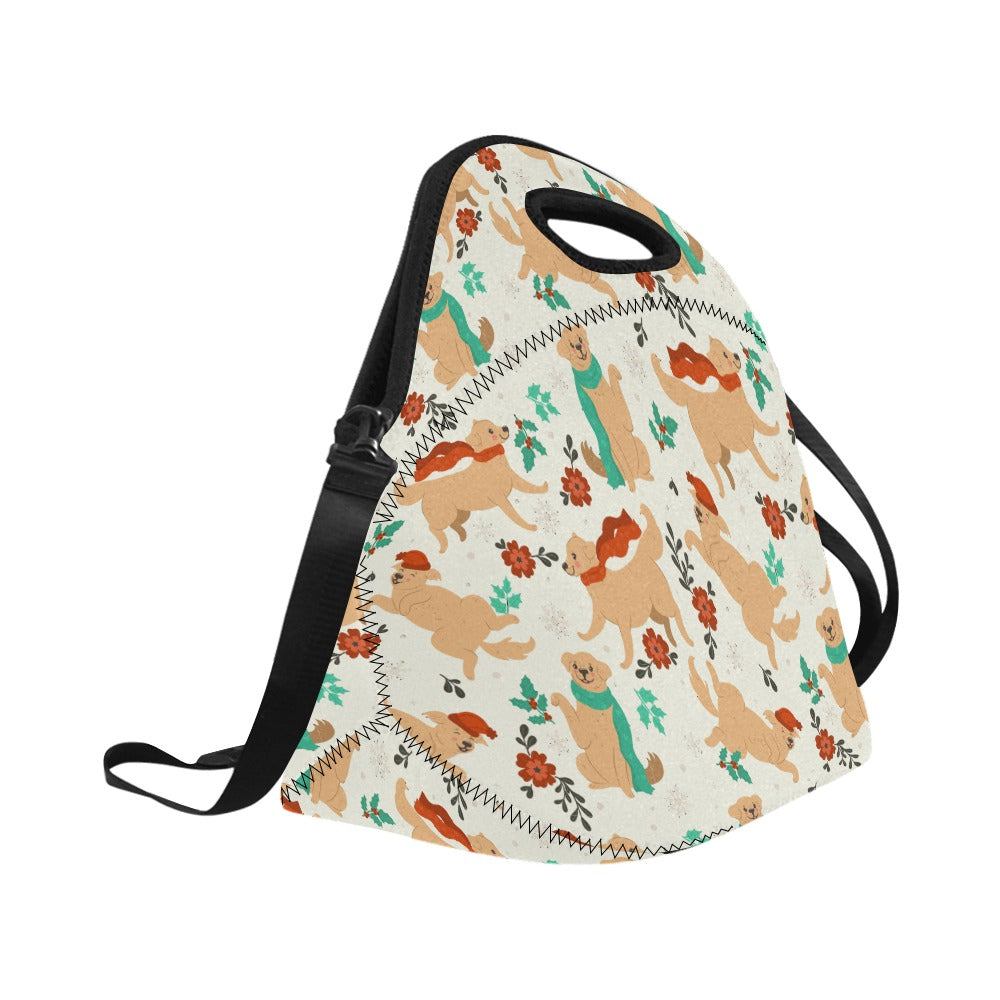 Merry Merry Golden Retriever Christmas Neoprene Lunch Bag