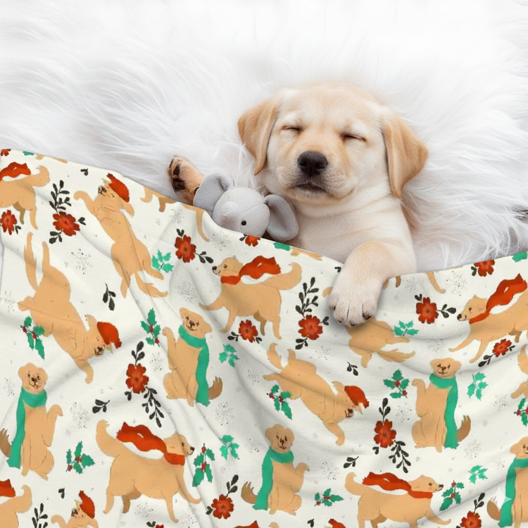 Merry Merry Yellow Labrador Christmas Blanket for Dog