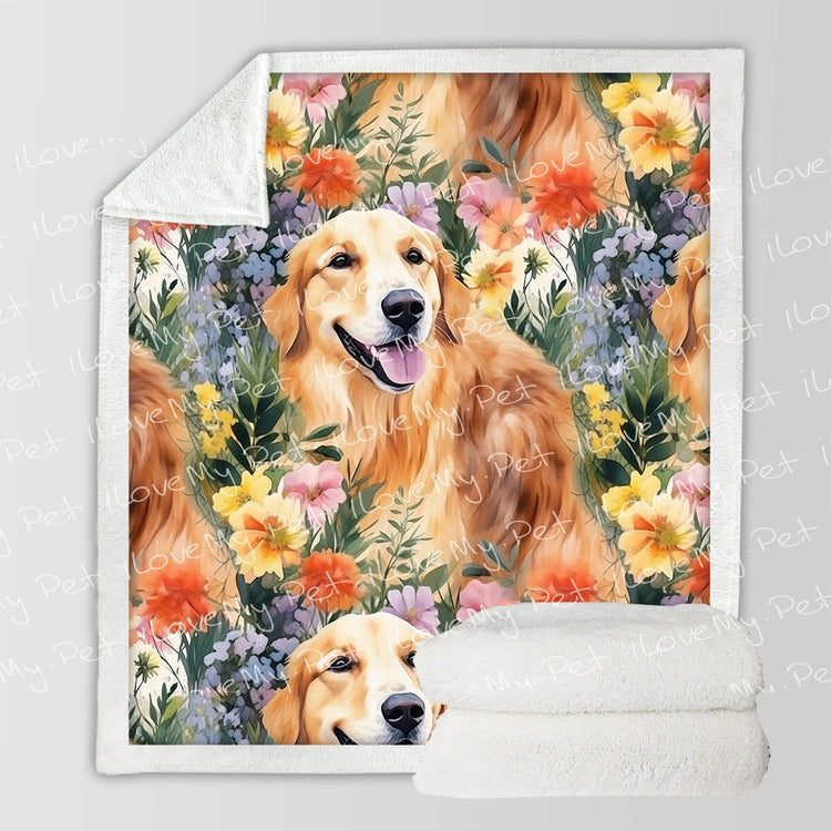 Springtime Summer Golden Retriever Love Fleece Blanket