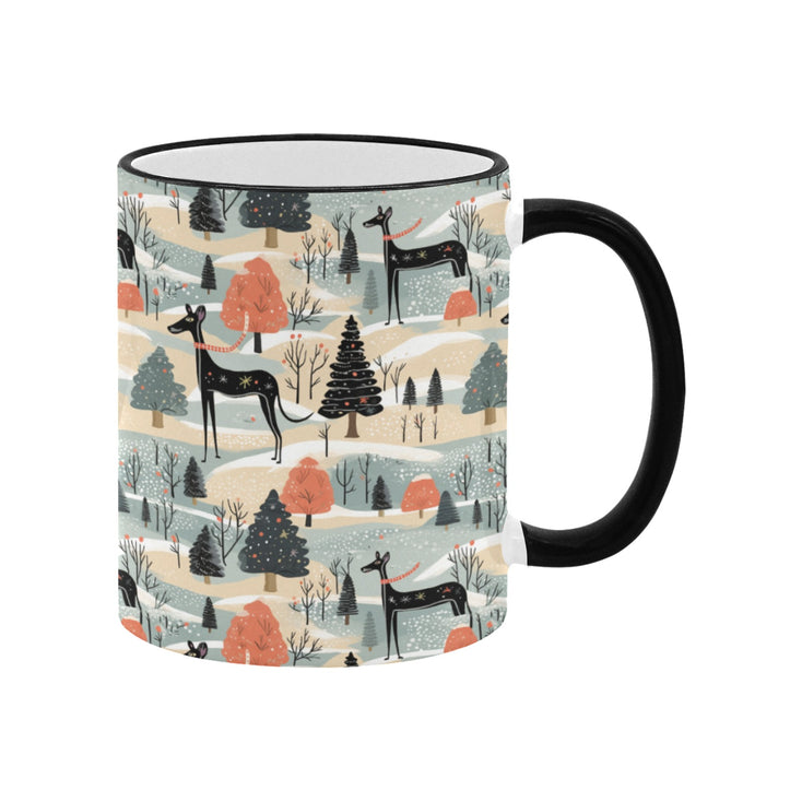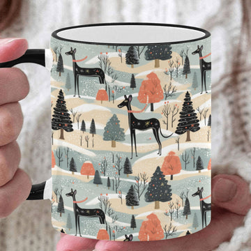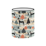 This exquisite mug features a serene winter landscape, where elegant Great Danes gracefully traverse a snowy realm, embodying the spirit of the season.