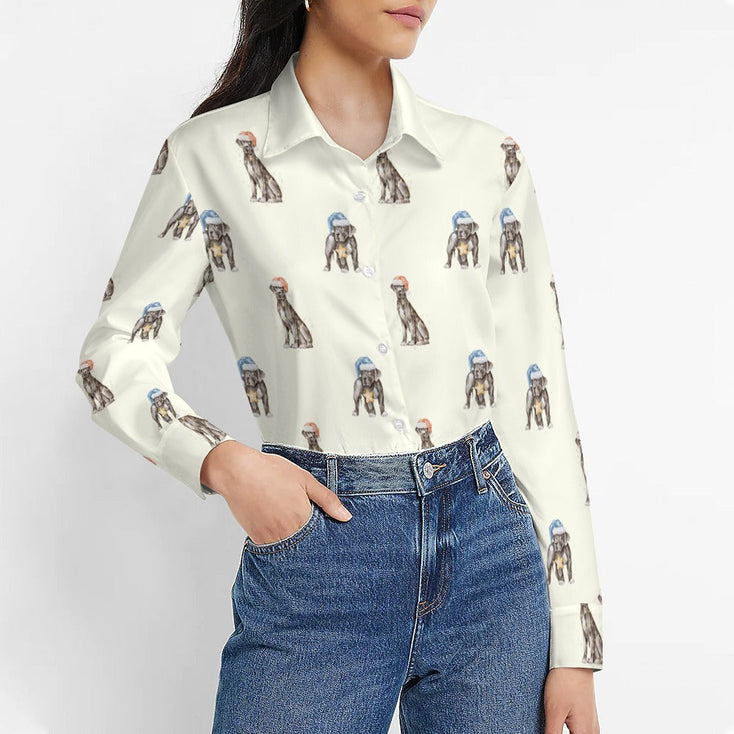 Spread holiday cheer with our Watercolor Black Great Danes Christmas Women's Shirt!