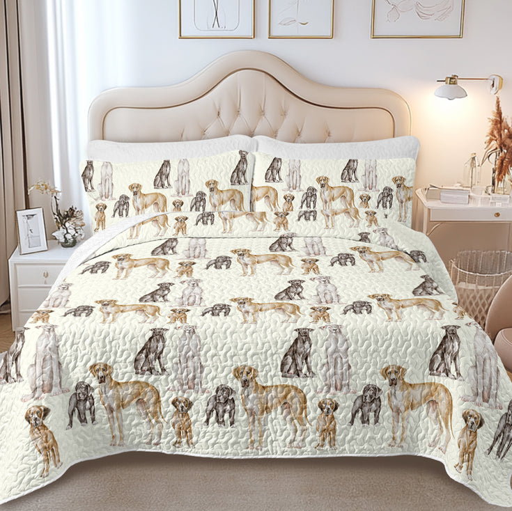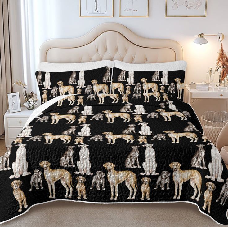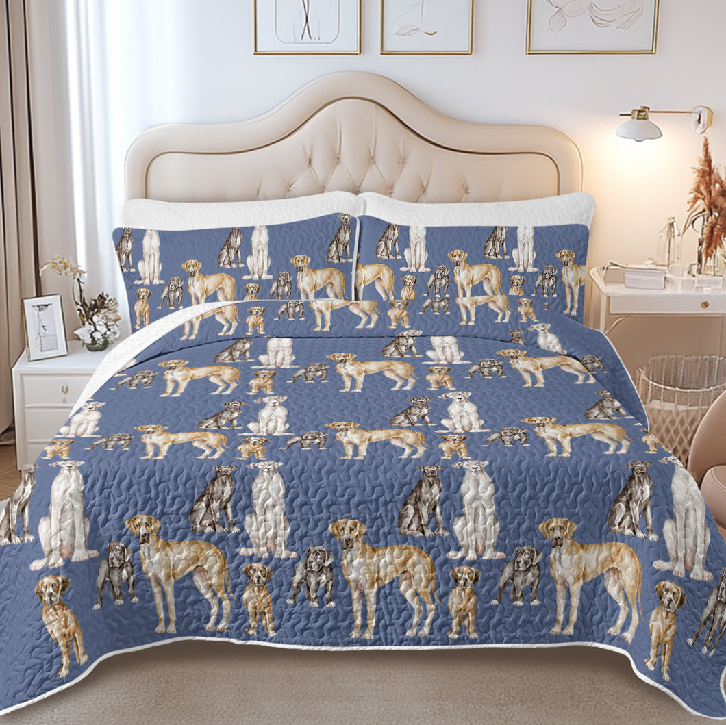 Watercolor Celebration Great Danes Quilted Bedding Set
