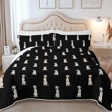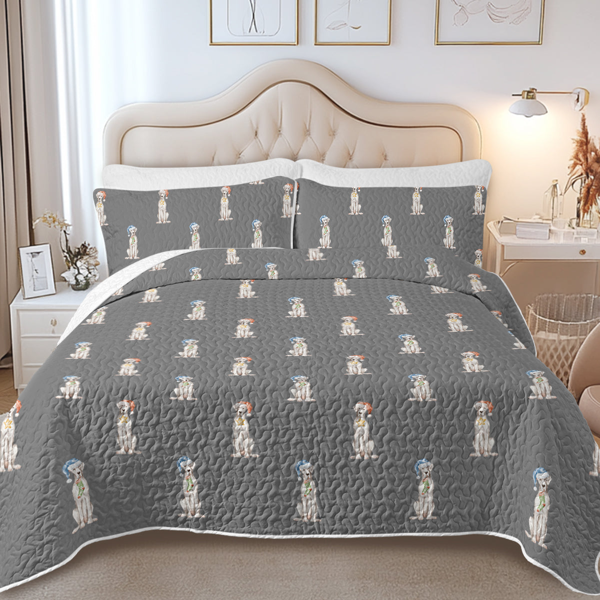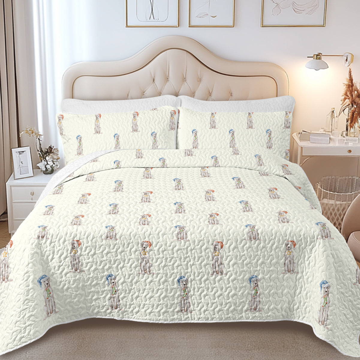 Watercolor White Great Dane Christmas Quilted Bedding Set