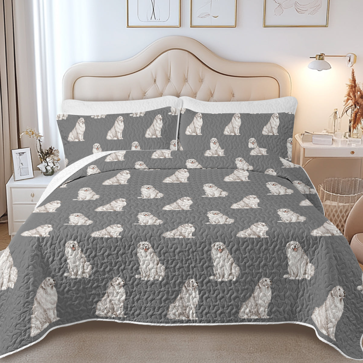 Wrap yourself in the warmth of a Great Pyrenees embrace with our exquisite quilted bedding set.