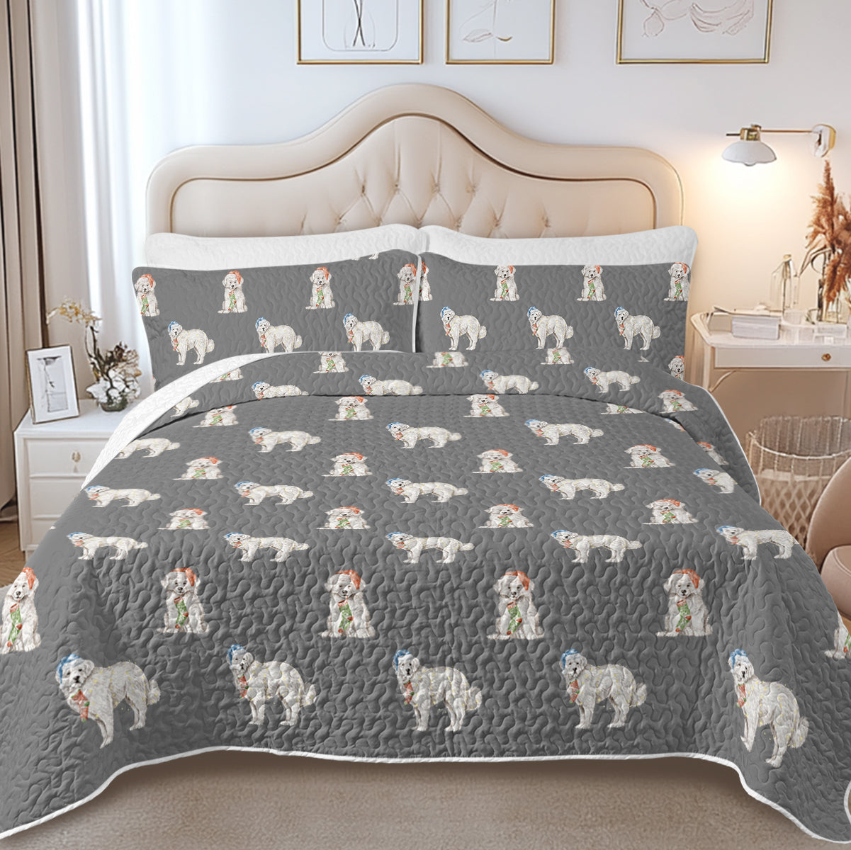Watercolor Delight Great Pyrenees Christmas Quilted Bedding Set