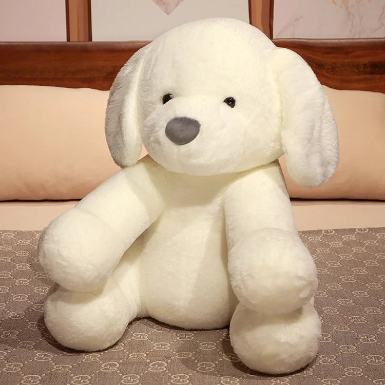 Its lifelike features, including dark eyes, and a black nose, make it an adorable addition to any home. The sitting down position adds to its inviting and cozy appeal, making it ideal for snuggling. Designed with both Great Pyrenees and people in mind, this plush toy is perfect for children and dog lovers alike.