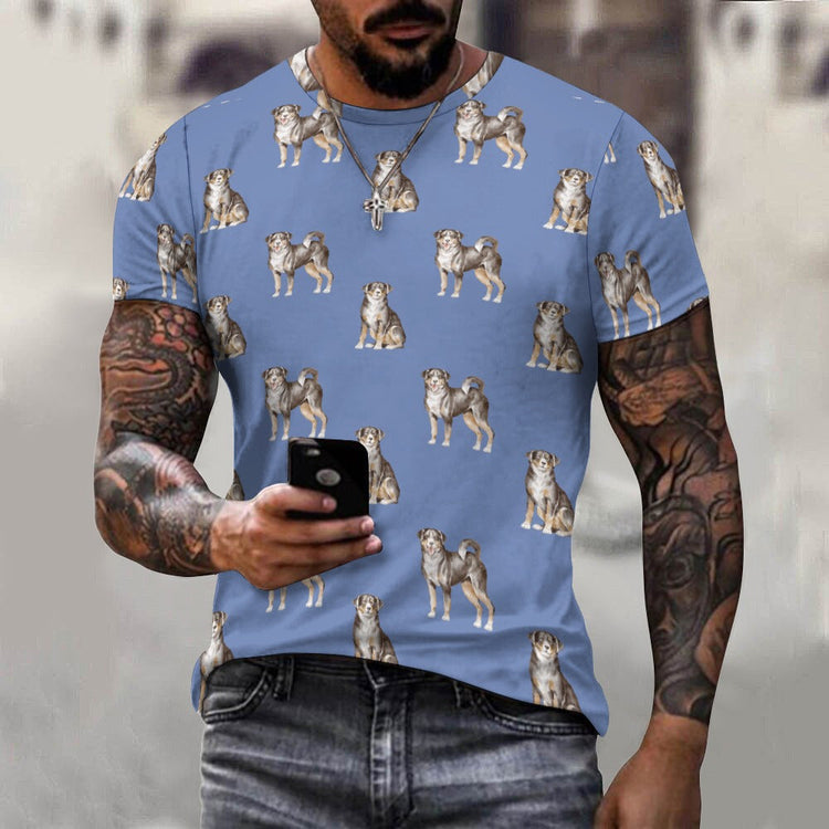 Watercolor Elegance Appenzeller Sennenhunds Men's Cotton T-Shirt-Apparel-Apparel, Appenzeller Sennenhund, Christmas, Dog Dad Gifts, Shirt, T Shirt-S-Cornflower Blue-17