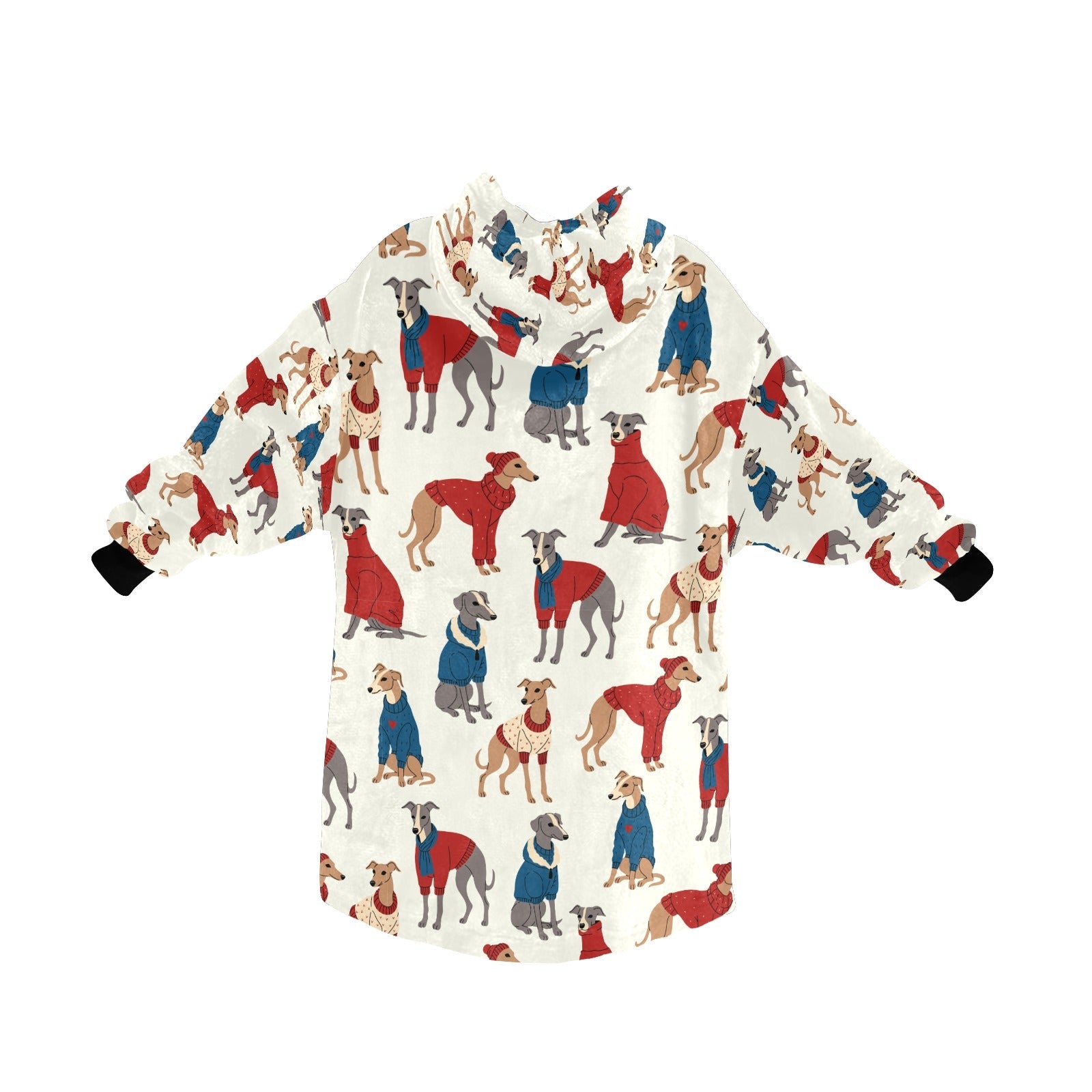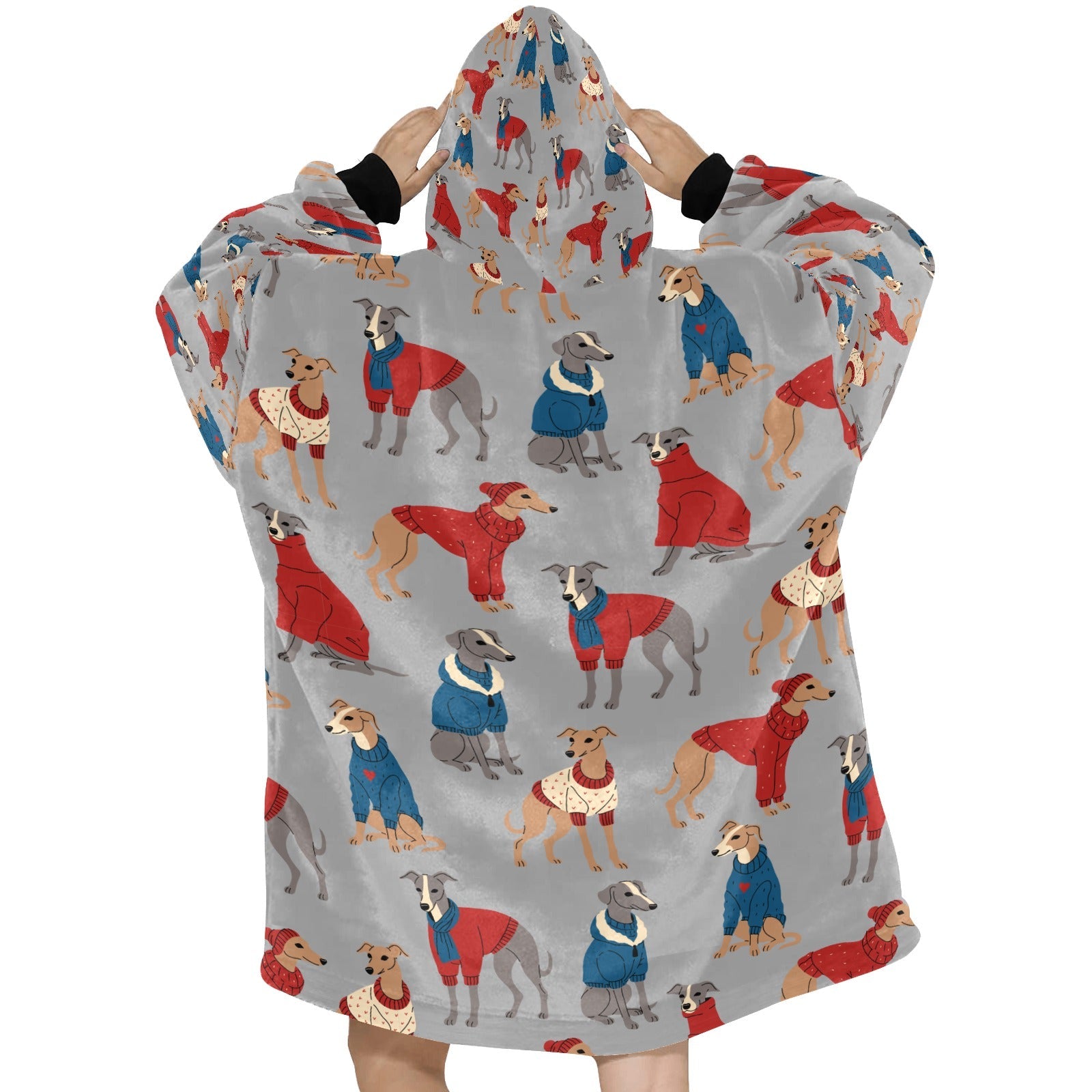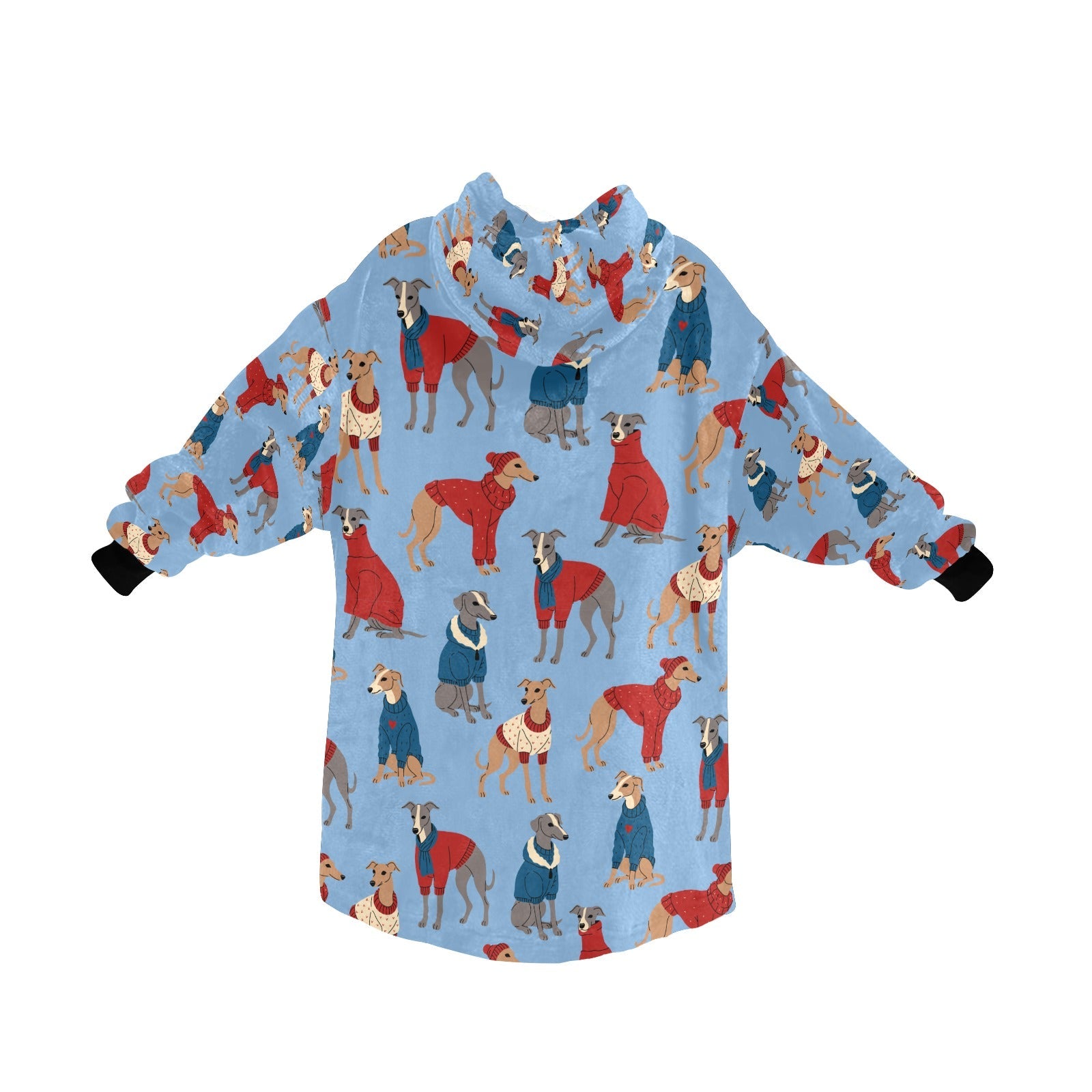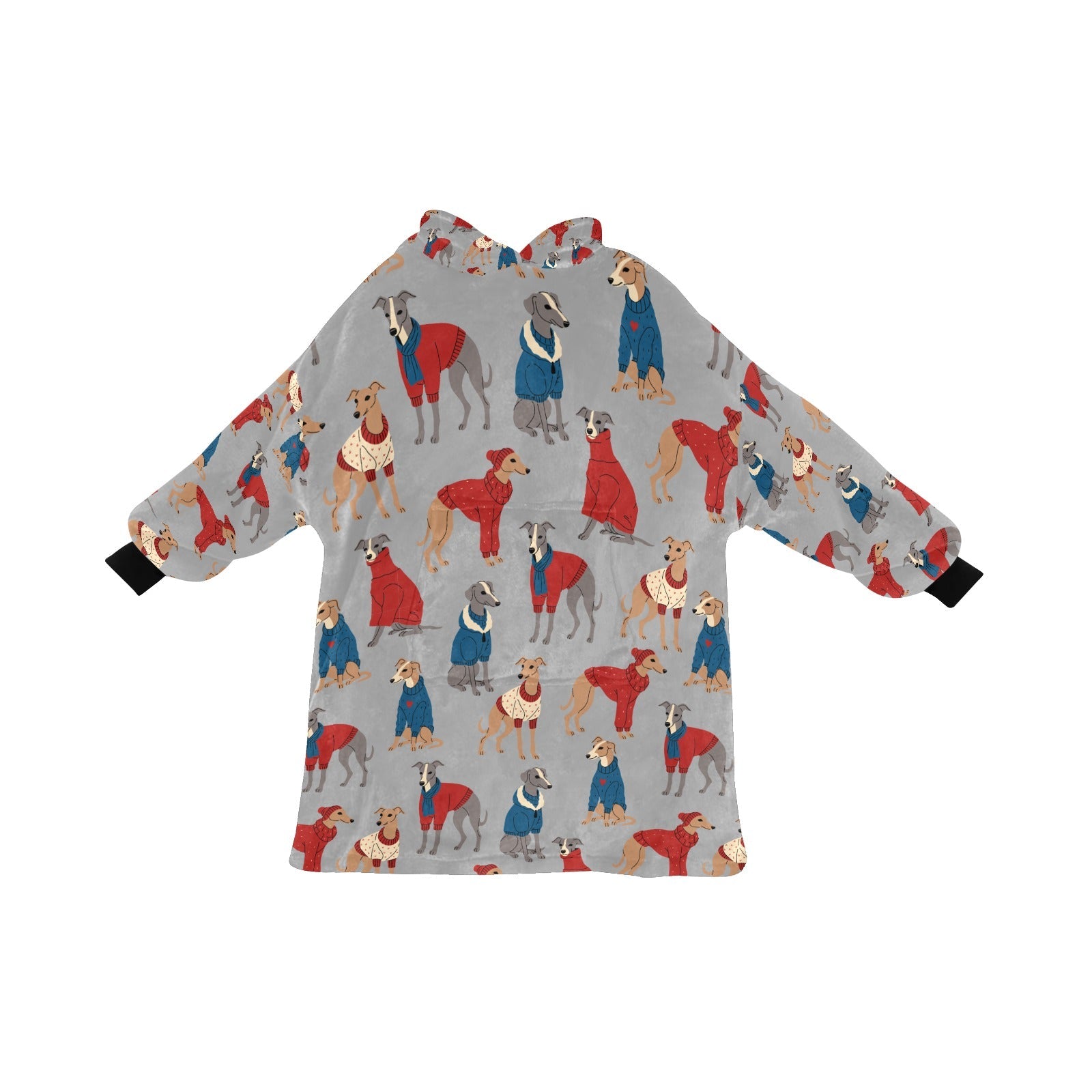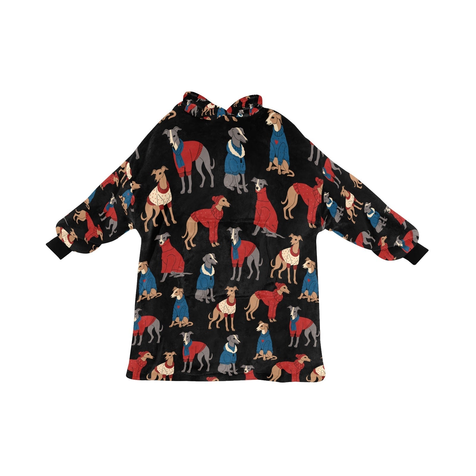 Greyhounds in Festive Winter Wear Blanket Hoodie-31
