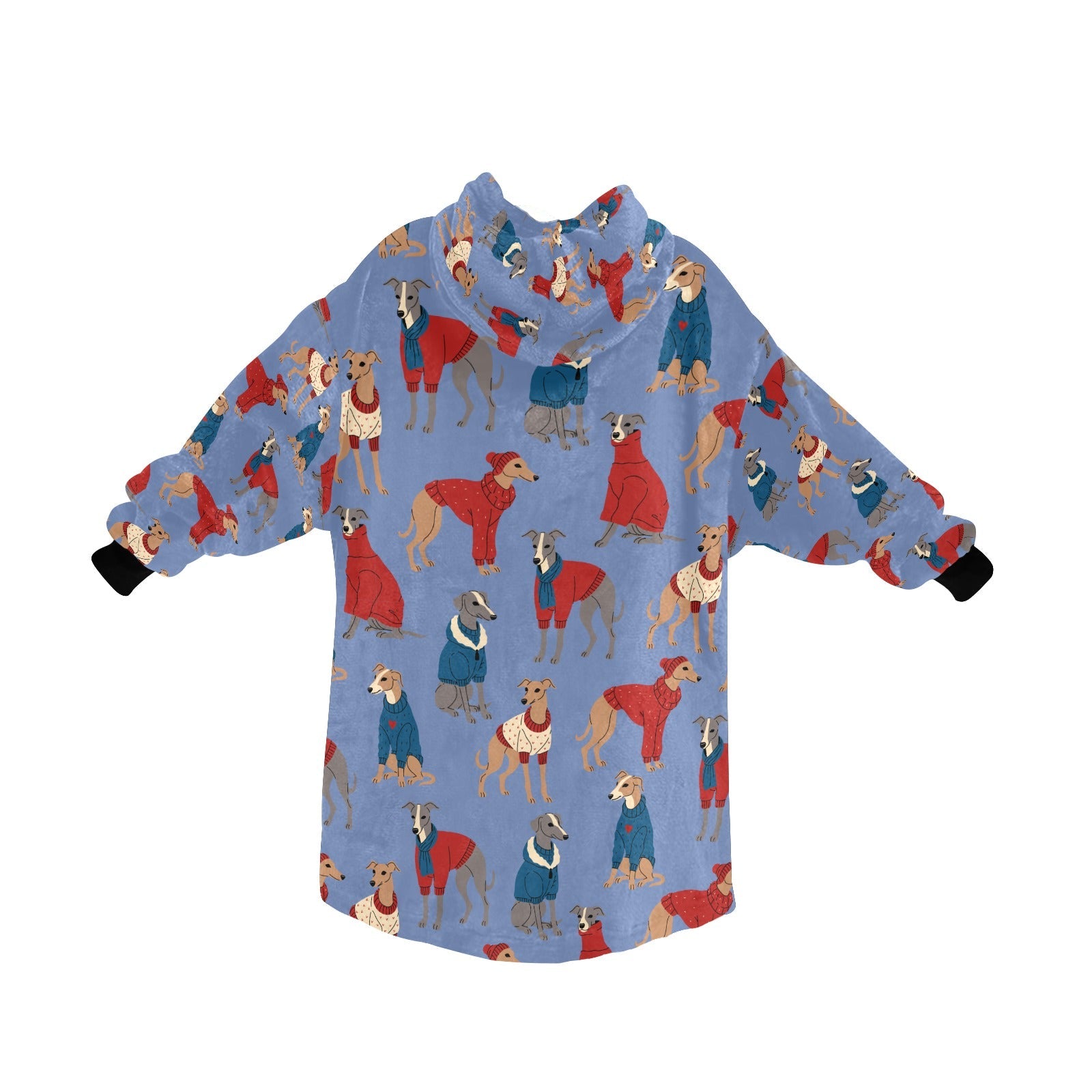 Greyhounds in Festive Winter Wear Blanket Hoodie-11