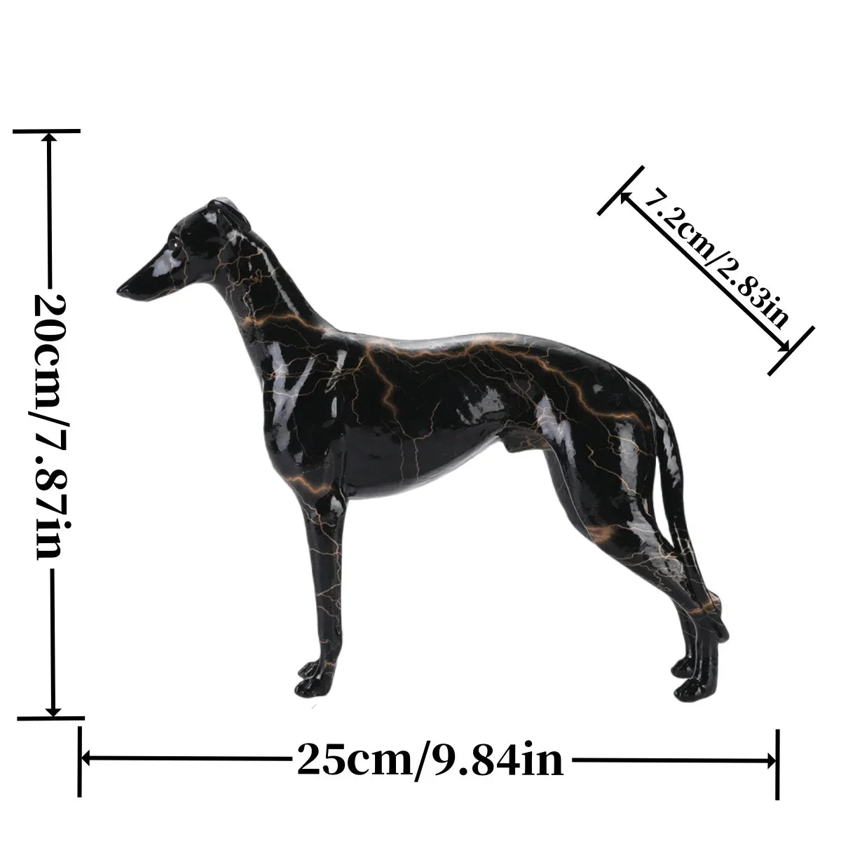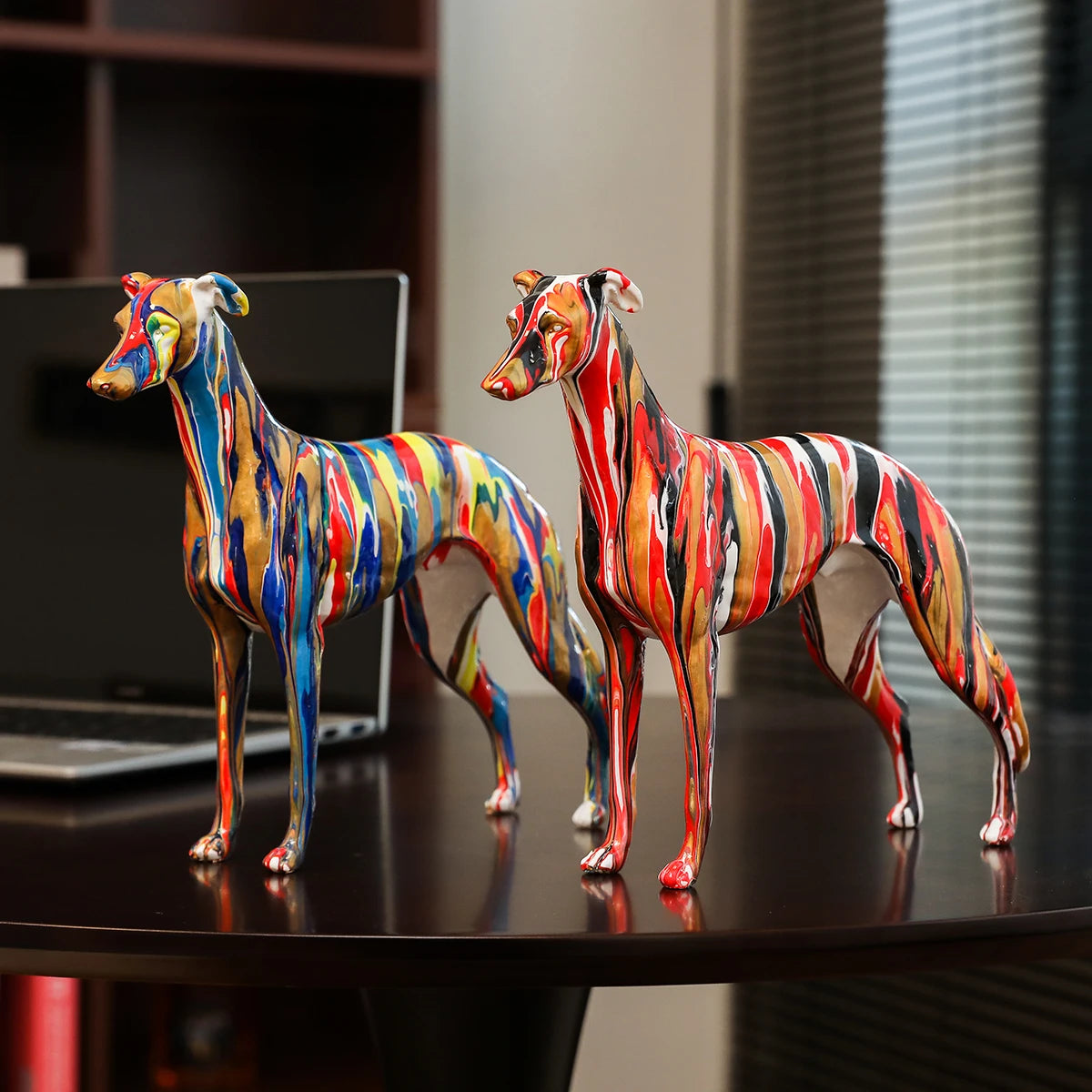 Each statue showcases a distinct paint job, from the striking black with brown lightning streaks to vibrant, colorful patterns and marble designs. These artistic expressions celebrate the beauty of Greyhounds, flaunting your love for this graceful breed.